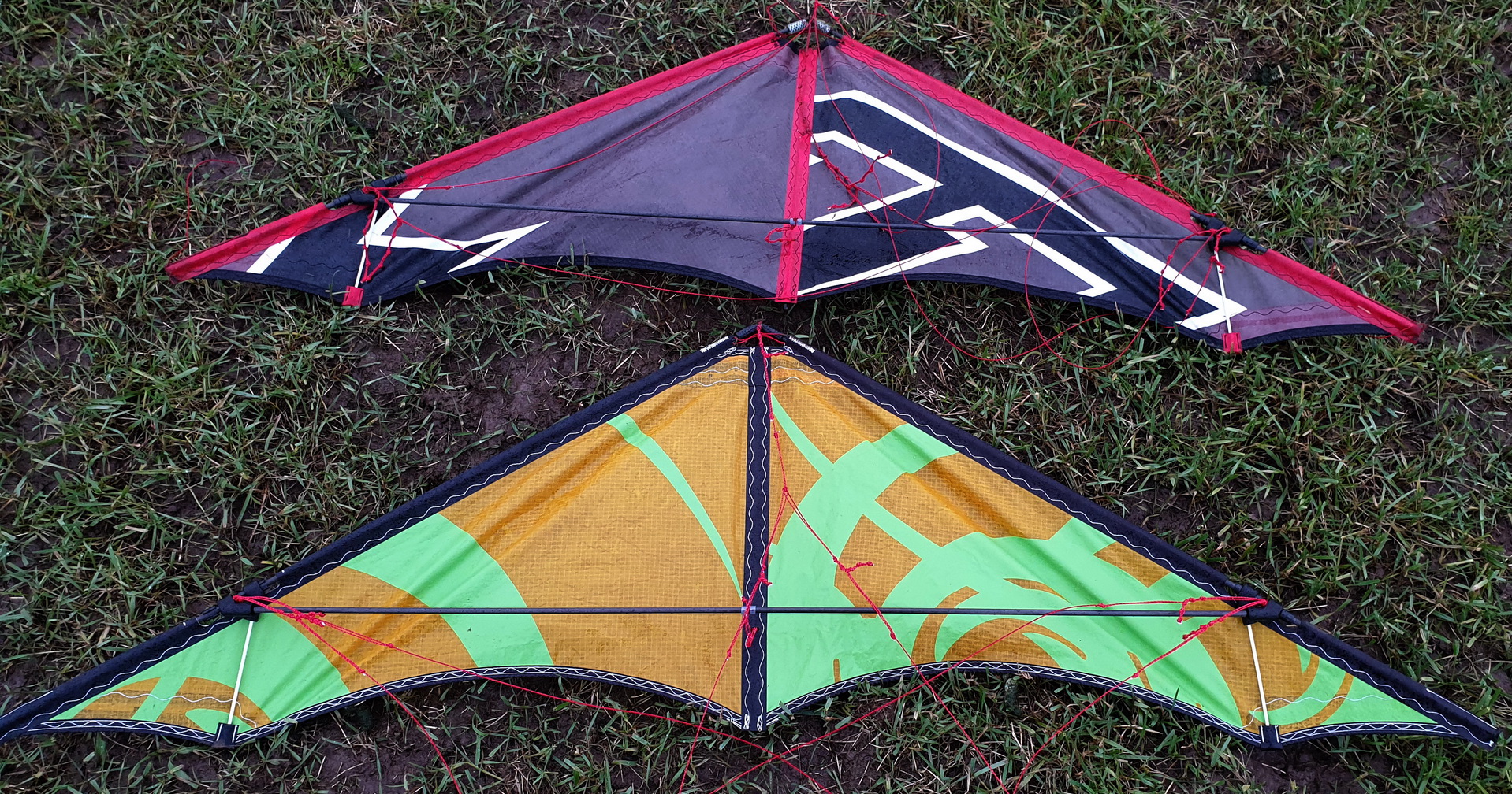 Und irgendwie schwebte mir letztens noch ein Gehirnfurz im Kopf rum, um den Druck bei größeren Gespannen vielleicht etwas runter bekommen zu können... Ein Vented, hier als Leitdrachen im Gespann, da der Wind für den Solo-Flug zu wenig war