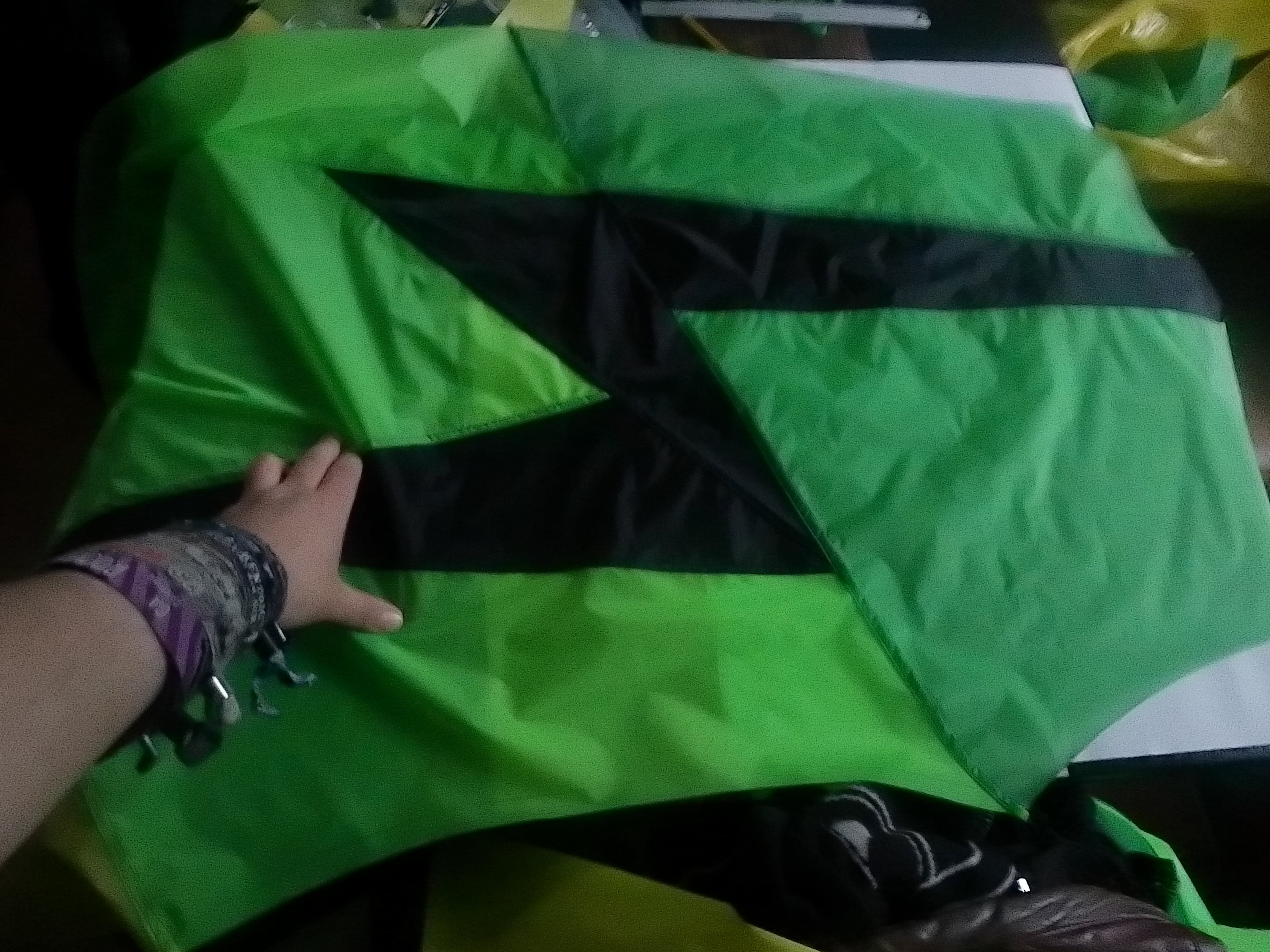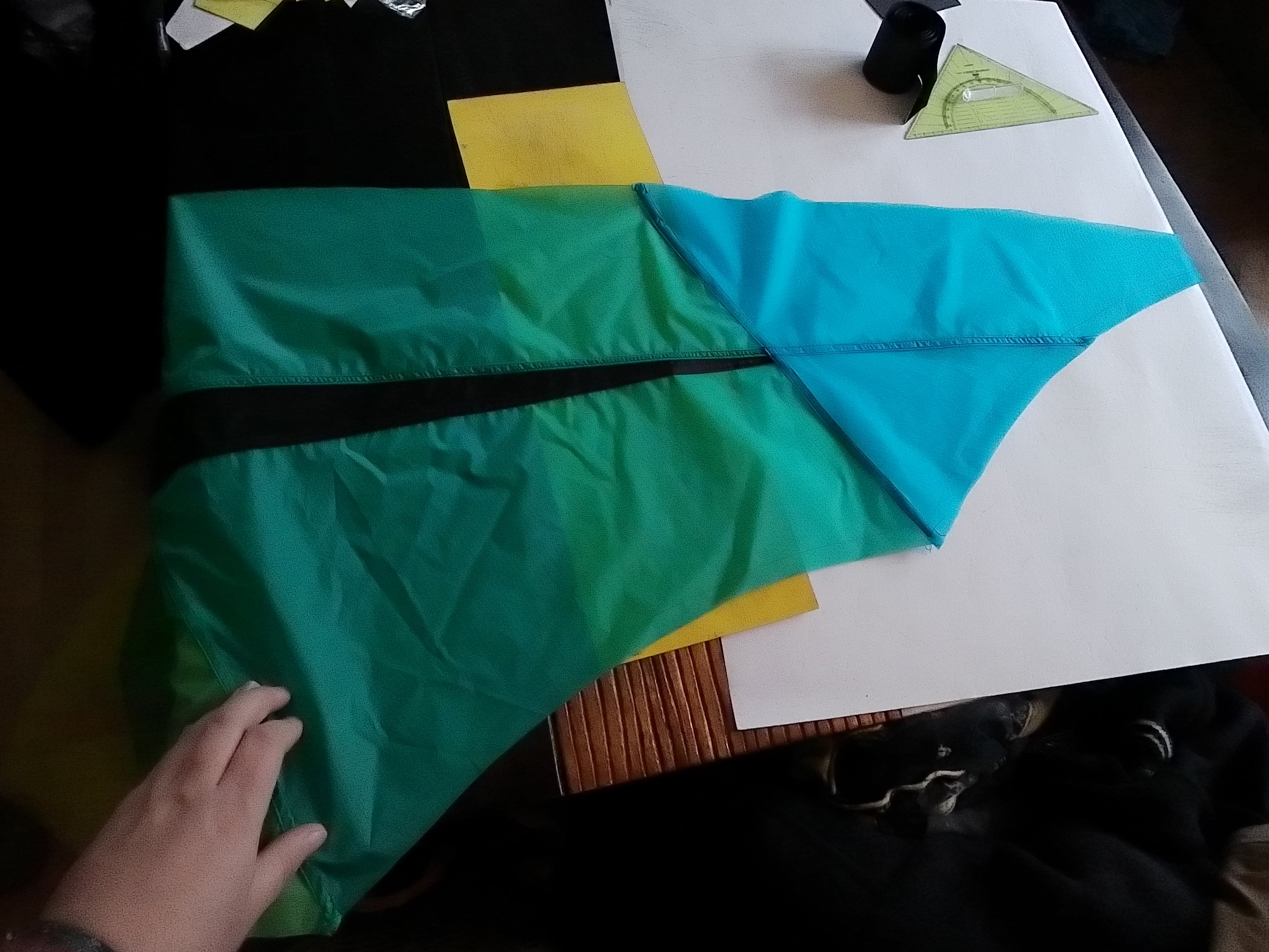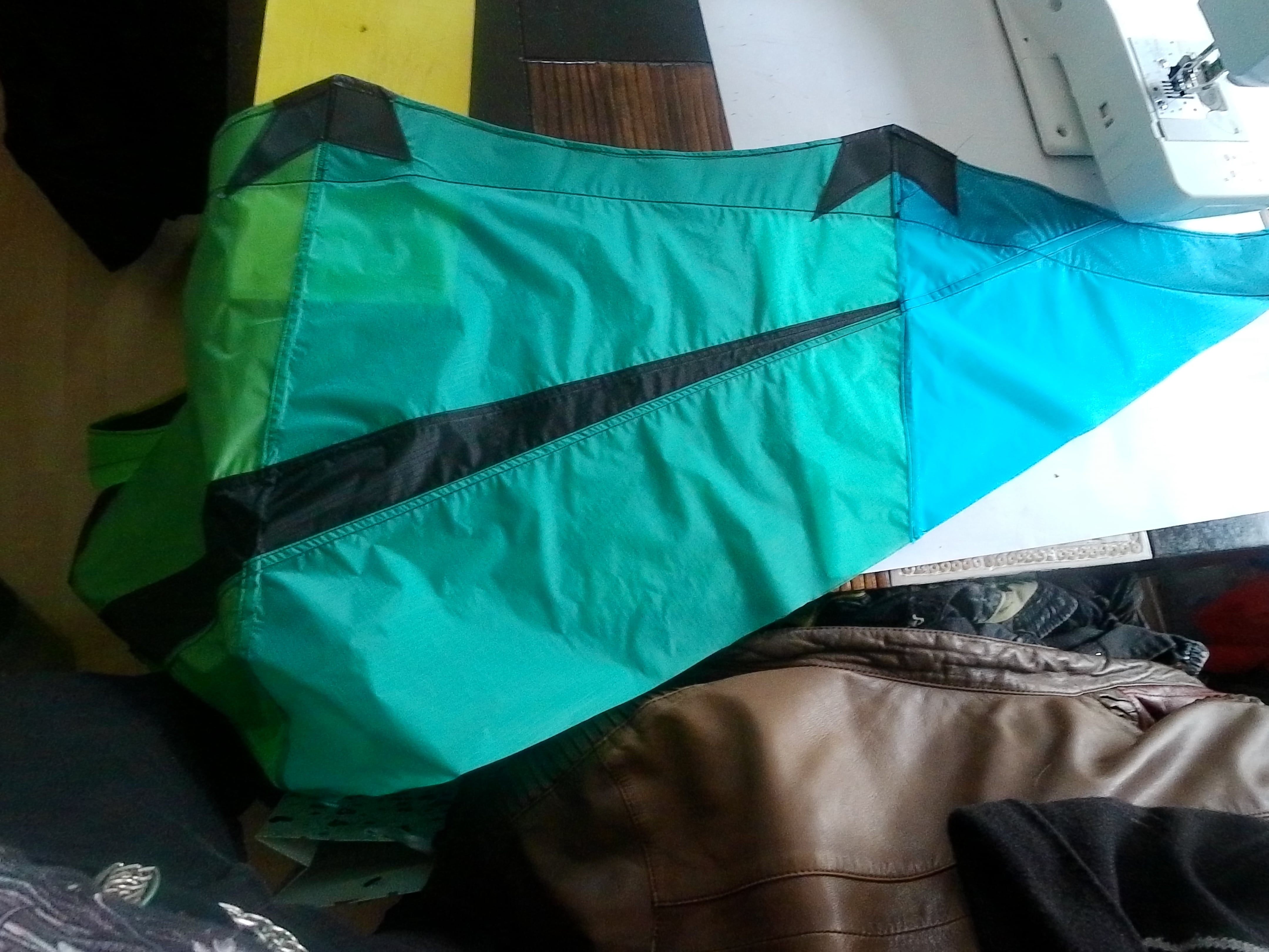 .. &mm komplett Bestabung, 2mm Segellatten, 3mm Stand-Off. Tuch aus metallisch beschichtetem Tuch in weinrot/ lila schimmernd. Im Gegenlicht erscheint er dunkel mit leuchtenden Blitzen! Segellattentaschen aus mit Goldfolie hinterlegtem Mylar. Bin gespannt wie der wohl ab geht!!