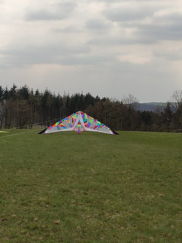 Ich bin immer noch beflügelt von dem gestrigen Tag. Als ich an der Wiese ankam, hat Harald mit ein paar Einleinern schon für ein kleines Drachenfest gesorgt und tja, es lag was in der Luft. Harald baute den Flaki 7.6 auf und ich war echt geplättet, als er dann aufgebaut vor uns auf der Wiese stand. Ich bin ja auch einen am bauen aber ich habe ja noch keinen von den großen in echt gesehen, Wahnsinn. So schön wie der gestern geflogen ist, wünsche ich mir von meinem wenn er fertig ist dann auch, dass ist echt was anderes.