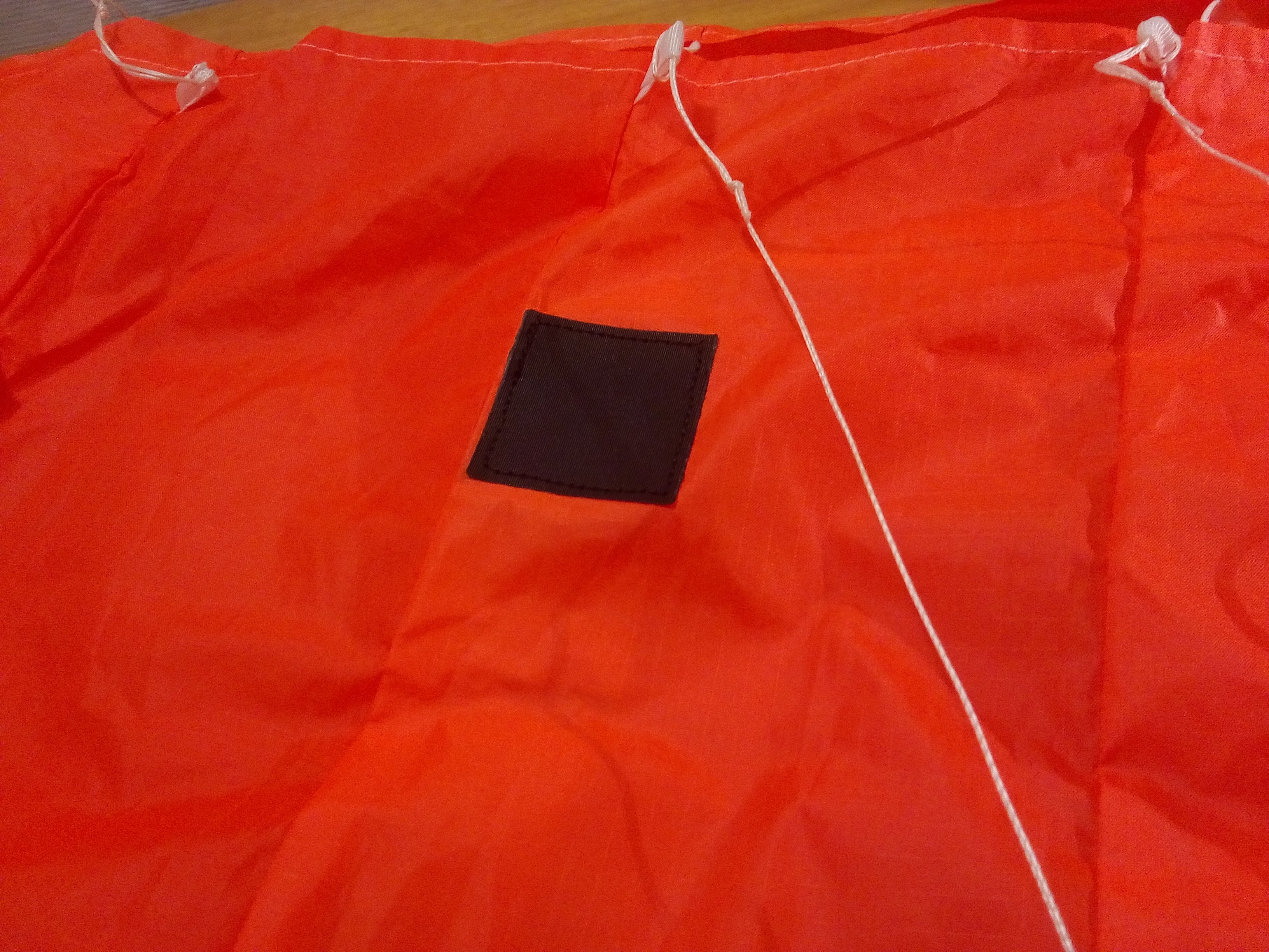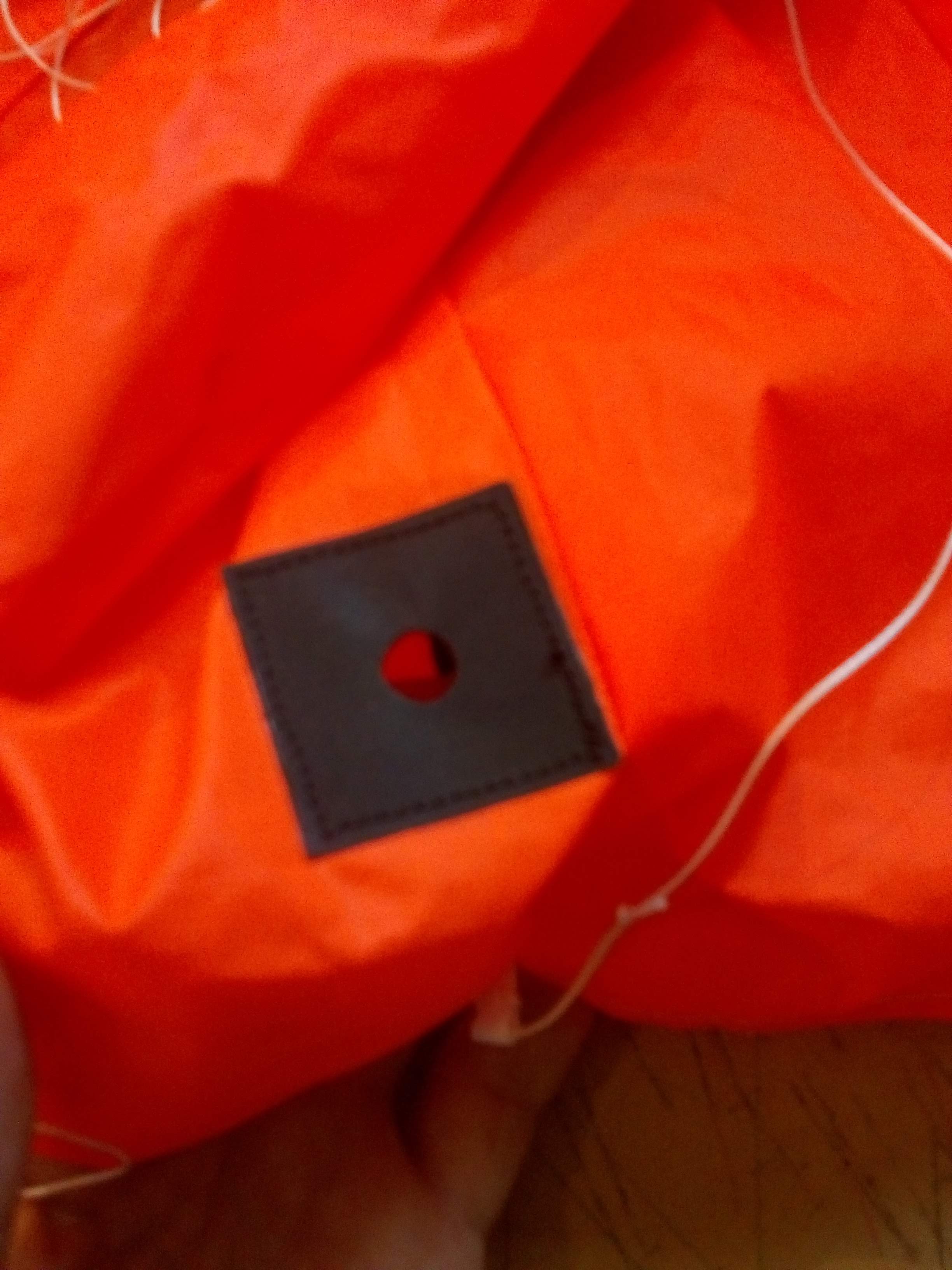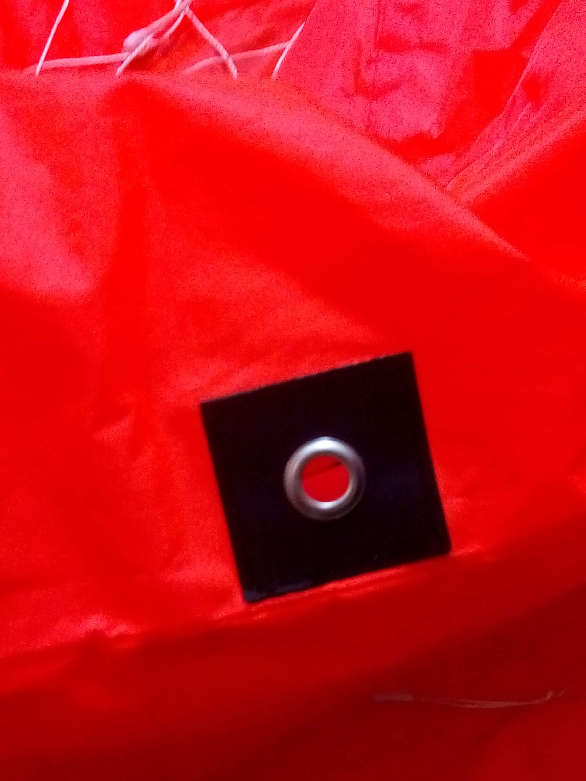Das kostete schon einige Überwindung, an der neuen Matte rumzunähen und Löcher rein zu stanzen. In der Dacronverstärkung hatte ich ein 8mm Loch gestanzt.