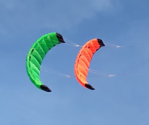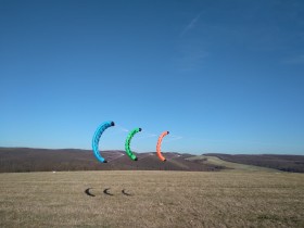 Und? Das Ergebniss war echt miserabel. Es war nur ein einziges geeiere, die beiden Matten waren wie verrückt am hin und her schwingen. In meiner Drachentasche hatte ich noch Leinen von 180cm Länge. Damit wurden die Koppelleinen verlängert. Zweiter Versuch....