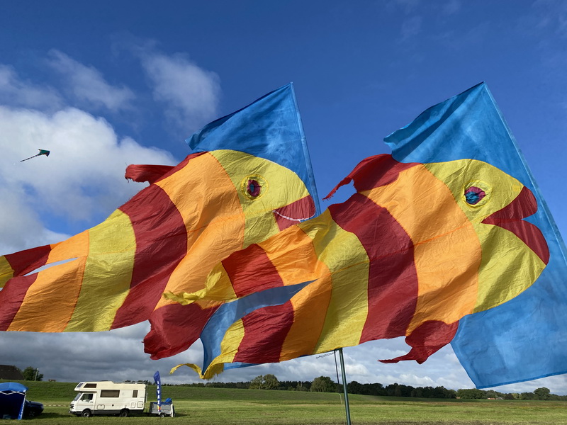 Die Windverhältnisse sind in A-Burg bekanntermaßen schwierig und die Windstärke war eher weniger als angesagt, so dass nur Leichtwinddrachen geflogen werden konnten. Dennoch war es schön, nach all’ den Festabsagen der letzten Zeit, dagewesen zu sein und mal wieder mit gleichgesinnten Quatschen zu können. Anbei ein Paar Bilder.
