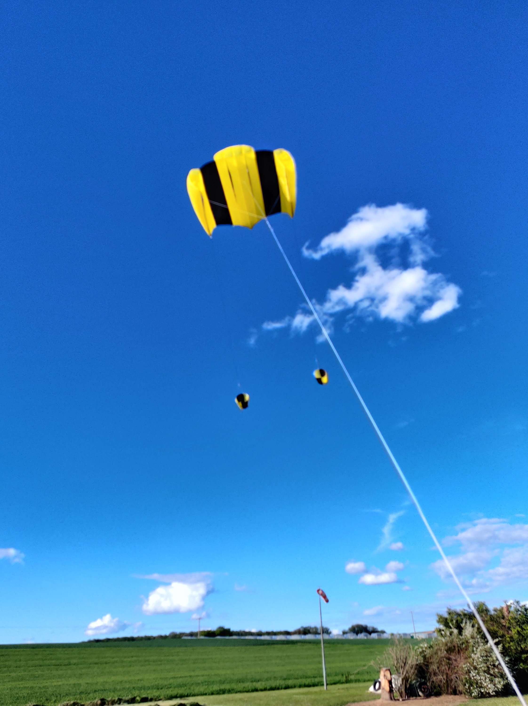 Die beiden Windsäcke drehen sich ganz lustig am Wirbelkarabiner und sind im Binnenland ein Pflichtutensil damit blieb der Shuttle heute 3 Stunden am Stück oben. Ohne die Windsäcke ist bei böigem Binnenlandwind egal oder schwach oder stark öfter mal Bodenberührung angesagt.