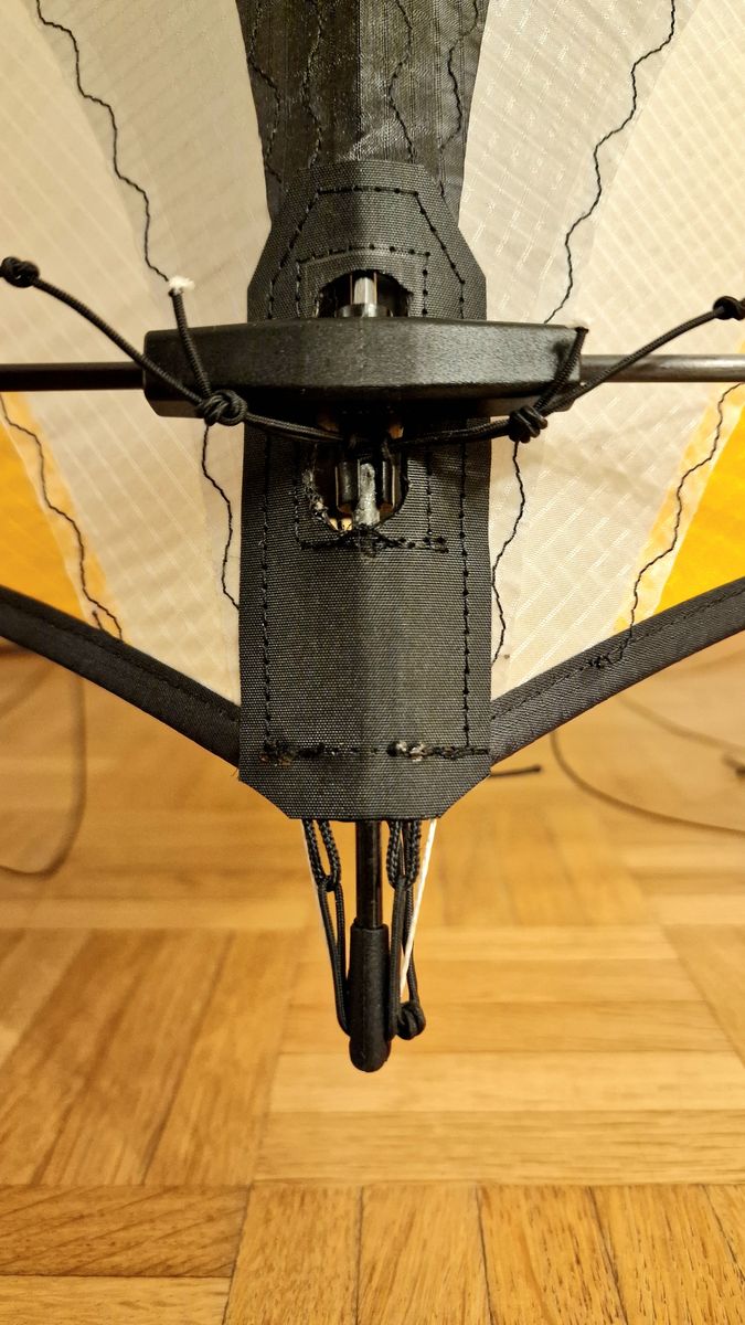 Der 2 Meter Saphire Speed war im nu aufgebaut. Wind, geschätzt eine satte 4 Bft. Die 35 Meter Leinen gelegt. Die Waage... Keine Ahnung, das Ding ist nach Bauchgefühl geknüpft/eingestellt und ich bereitete mich widermal emotional auf ein Knotenleiterrennen ein.