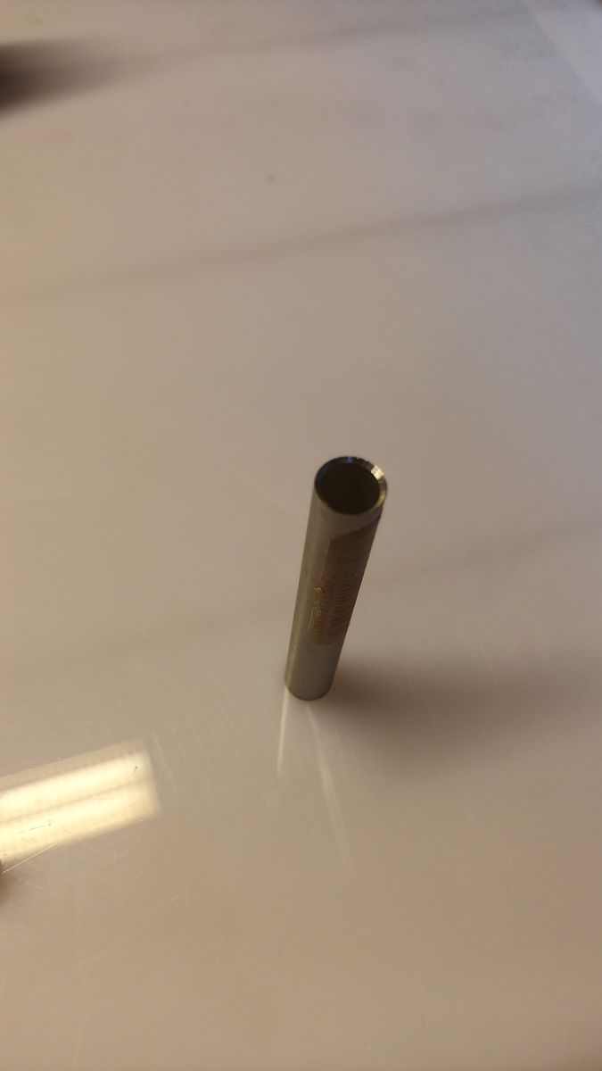 Dann habe ich mir aus einem Stück Metallrahmen mit 12mm außendurchmesser ein Stecheisen hergestellt indem ich ein Ende v8n innen her angeschafft habe. Das Spanne ich in den Akkuschrauber und kann damit nach den Druck die stützstruckturen relativ sauber rausschneiden.