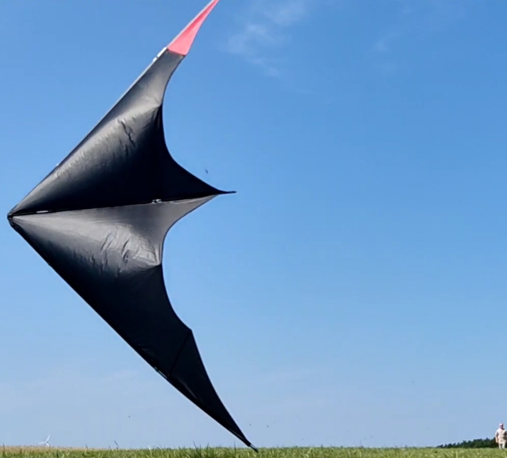 Er steckt als Fullsize 2 PT locker 3 Bft weg und lässt sich mit unterschiedlichen Trimms gut fliegen. Die Flugeschwindigkeit ist etwas flotter im Vergleich zum Masque, NSR oder gar Avatar. Aber das finde ich eher positiv. Auch an 50m ist er schön agil, präzise bei kurzen Lenkwegen und wenig Druck.