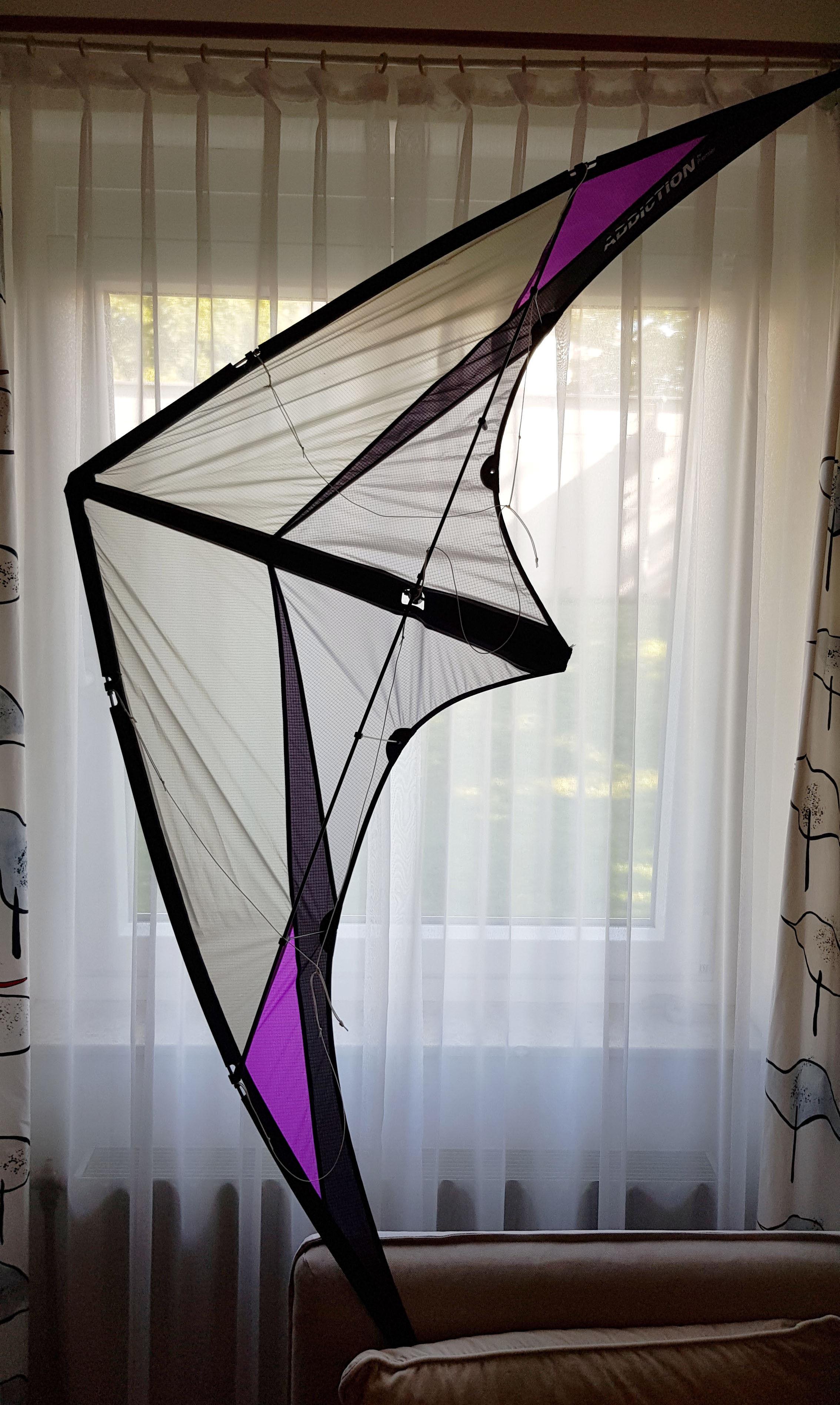 Vor ein paar Wochen habe ich gebraucht einen Addiction Trickkite von Premier Kites (USA) gekauft. Da fehlte die obere Querspreize und die beiden inneren Standoffs waren nicht OK – einer fehlte und der andere war nicht original drinnen.