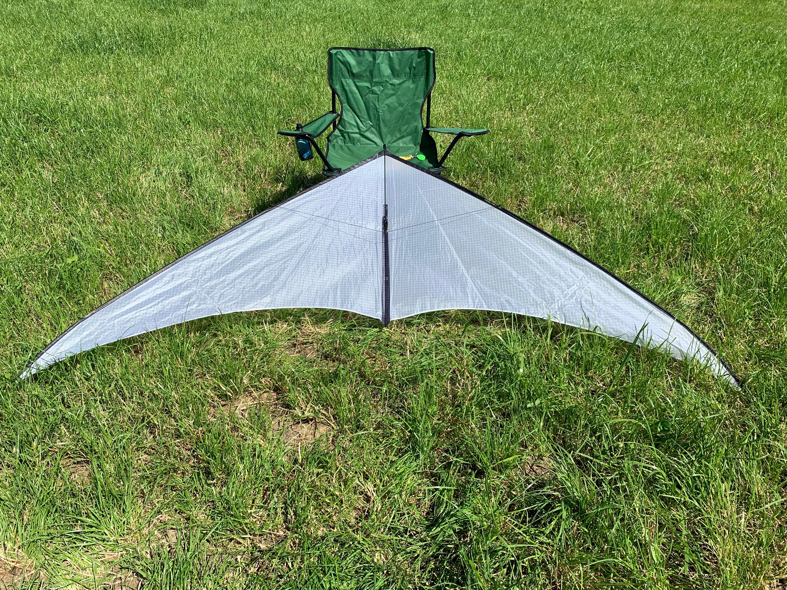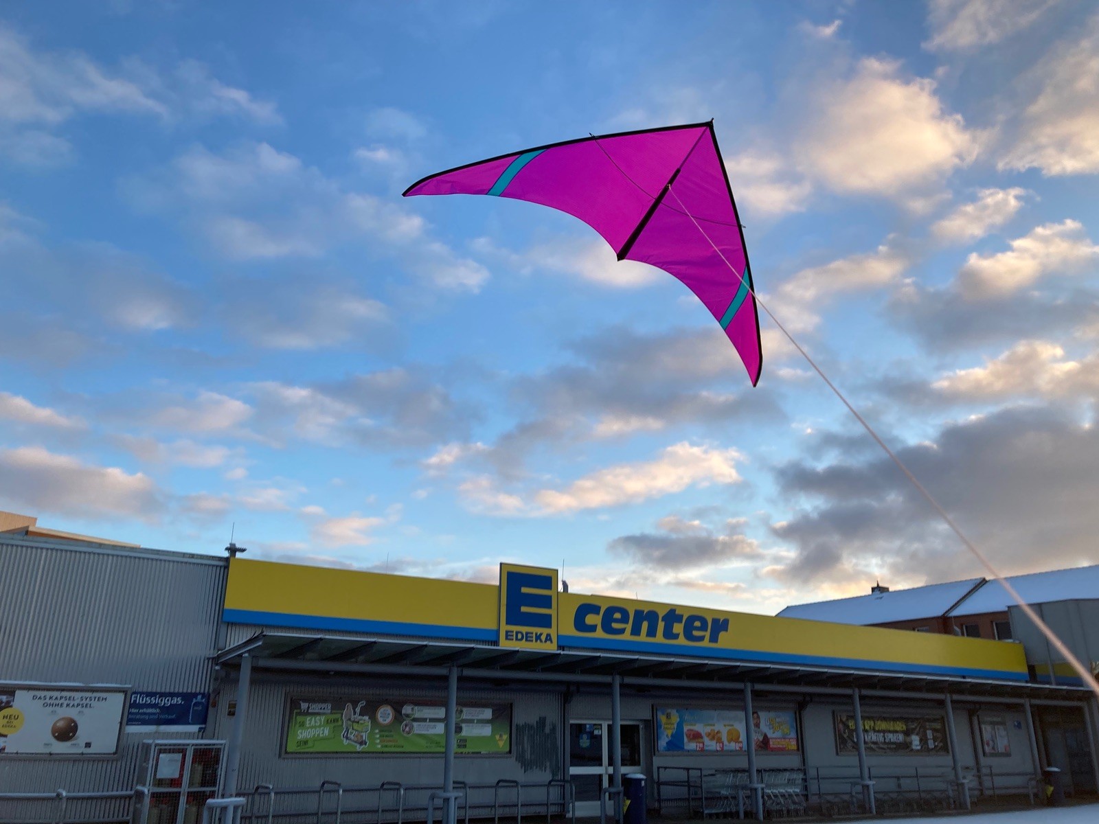 The LR glides rather well when it is totally undisturbed. It does so extremely gracefully and very slowly, and that is also visible in the video. But when you are out and the wind dies off, there may be still a little movement in the air. And this is when the LR reveals its own will and you have two choices, let it do what it wants or provide some guidance through the line. In the video, the sun went down and the air started to cool off but probably differently depending on what was on the ground (the grass area visible was actually not that large); I think air starts to move around in such situation, slowly but still impacting a kite as large, soft and lightweight as the LR. This is great fun for me - but will be frustrating for somebody who tends to value kites by the distance they are gliding on their own.