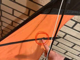 Mit längeren Spreizen sollte sich das Tuch im Mittelteil auch mehr spannen, es sollte das Kreuz nach oben wandern und damit sollte die Biegung weniger werden ggfs. ganz verschwinden.
