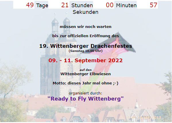 Wie Verena schon geschrieben hat wollen wir zum "Neustart" mal das Motto außen vor lassen. Wen aber einen Mottodrachen schon fertig hat..... einfach bei Chris "Engelkites" melden. Er wird das dann irgendwie in´s Programm einfließen lassen.