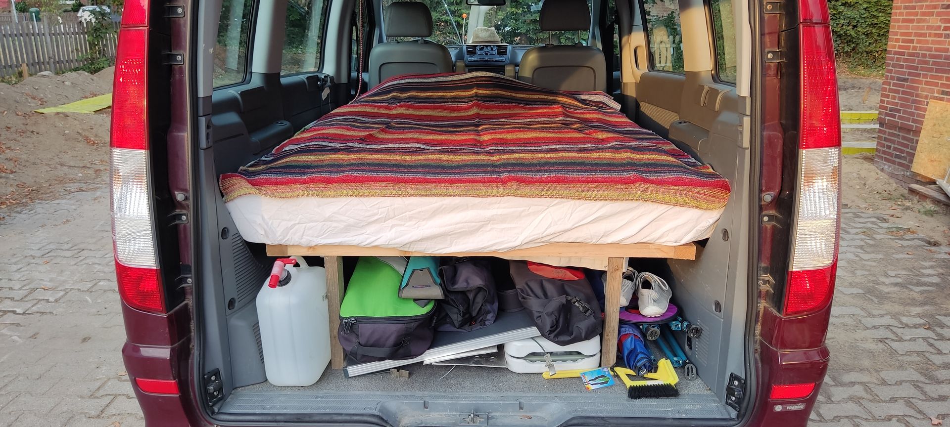 Auto und Wohnwagen sind überladen, Wittenberg kann starten.