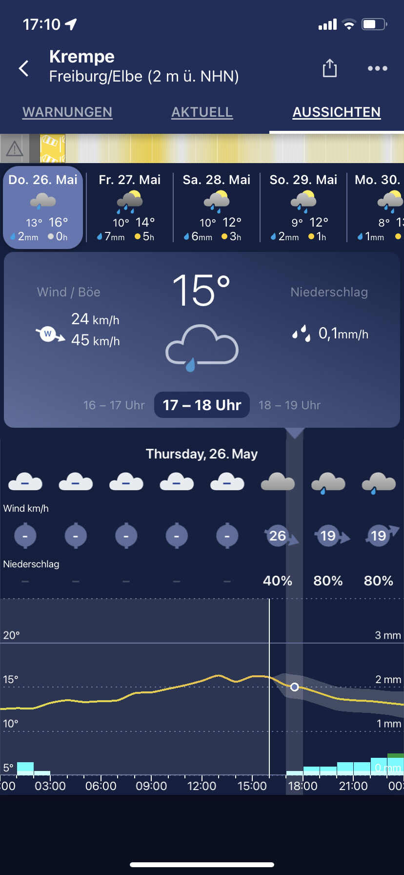 • Meine Wetteronline App sagte heute bis 70 km/h Wind in deiner Region und wie gesagt ich bin aus Hamburg und es war sehr Stürmisch heute im Norden. Und hier stimmte der Wind ziemlich gut mir der Vorhersage überein.