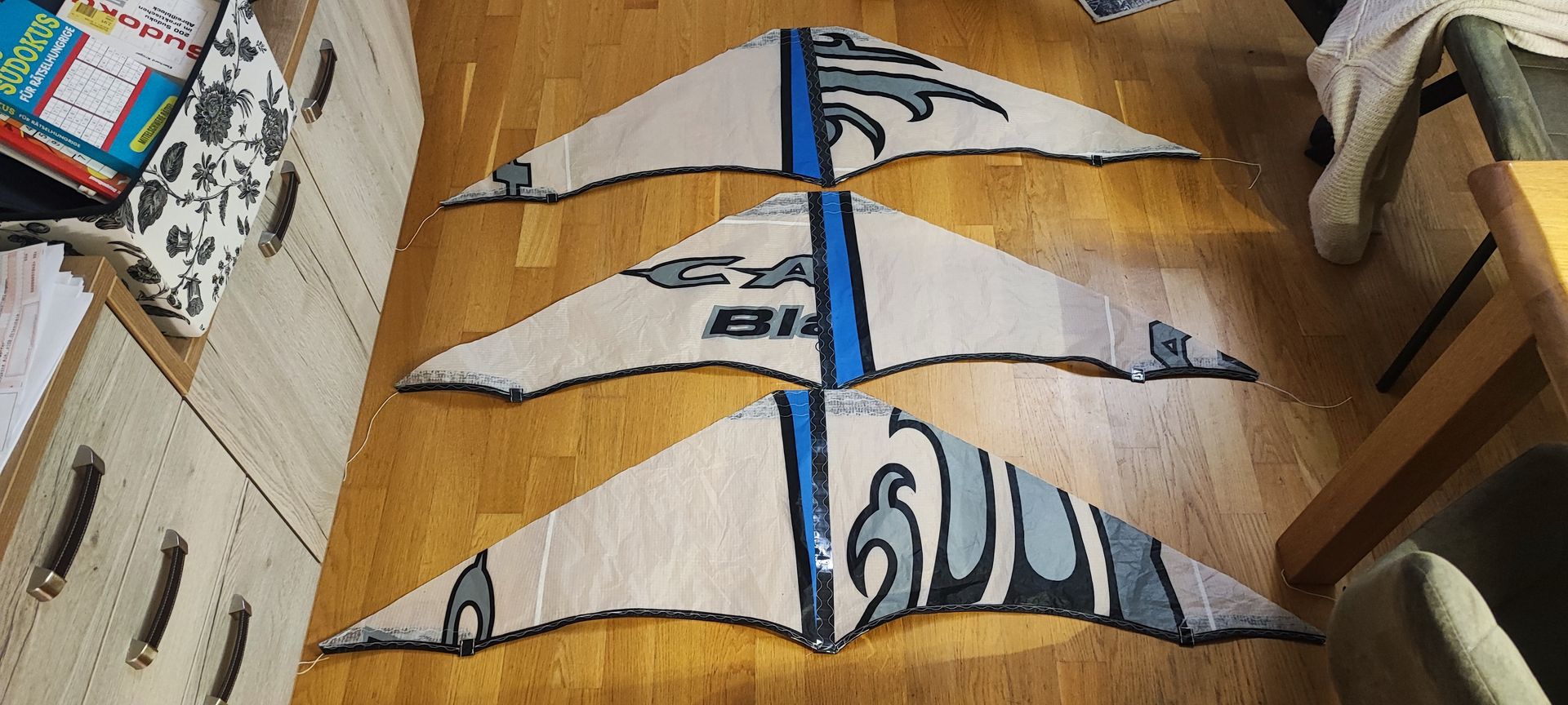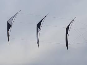 Das Maß laut Plan ist 21cm und ich habe auf 24,5cm verlängert. Damit flog das Gespann dann stabil und brachte auch etwas mehr Rückmeldung an den Leinen. Etwas Feintuning ist noch von Nöten aber das bei dem nächsten Testflug. Alles in allem läuft das Gespann.