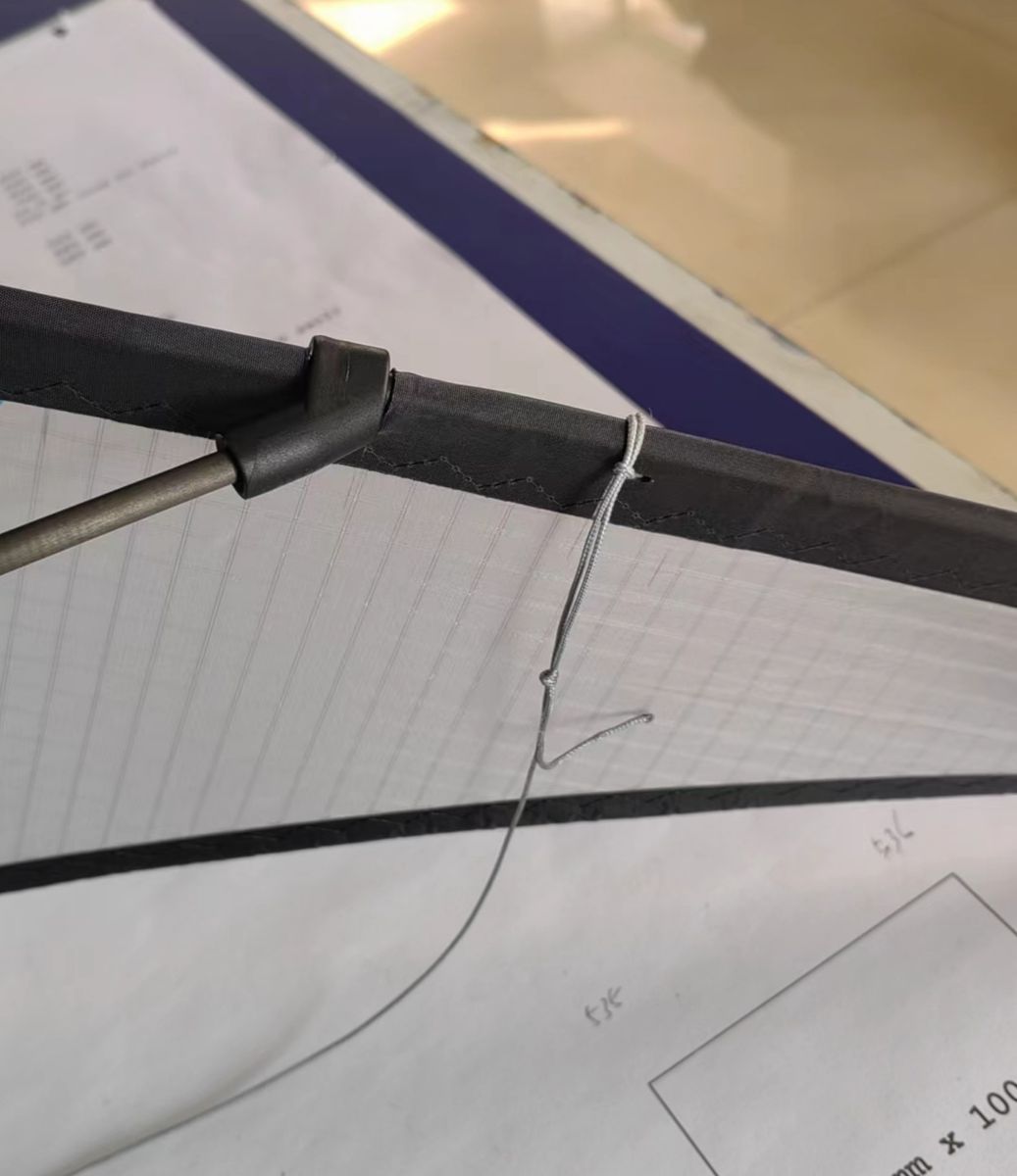Der Kite ist nicht wirklich gänzlich neu, es ist im Wesentlichen eine verkleinerte Version des Escape mit einem einfachen Gestänge, in diesem Fall 6mm gezogenes Carbon in den Leitkanten und 5PT in der unteren Spreize. Die Erfahrung mit dem EOL-Mini und dem Return-Mini hatten bereits gezeigt, dass eine Verkleinerung eines funktionierenden Entwurfs recht gut fliegt. Daher habe ich auch nicht allzu viel Zeit von den ersten Prototypen bis zur jetzigen Veröffentlichung verstreichen lassen.