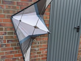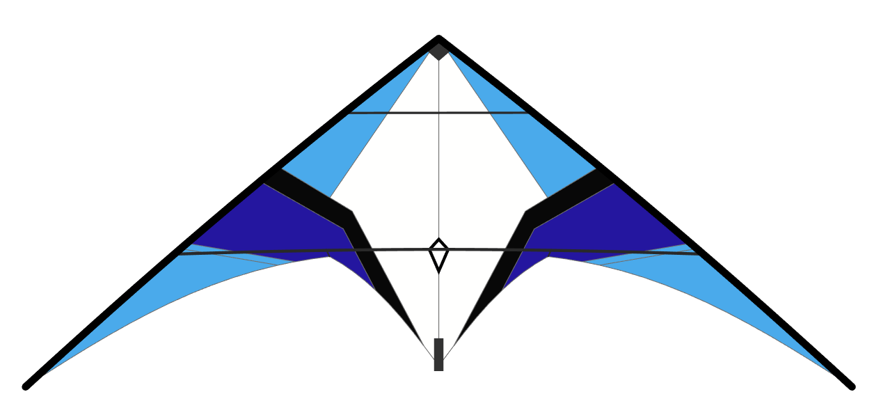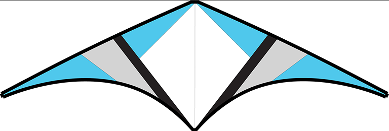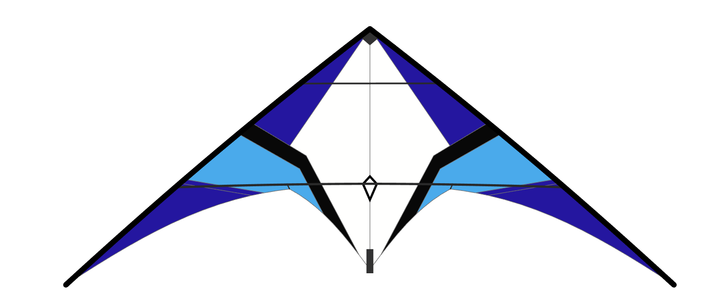 Der Drachen ist mit einer Leitkantenlänge von 140cm genau 10cm kürzer als der Escape. Er ist in der Spannweite nur geringfügig kleiner als der Return. Um seine Verwandtschaft mit dem Escape zu unterstreichen, hat er auch ein ähnliches Design, ich habe lediglich ein kleines Panel weggelassen.