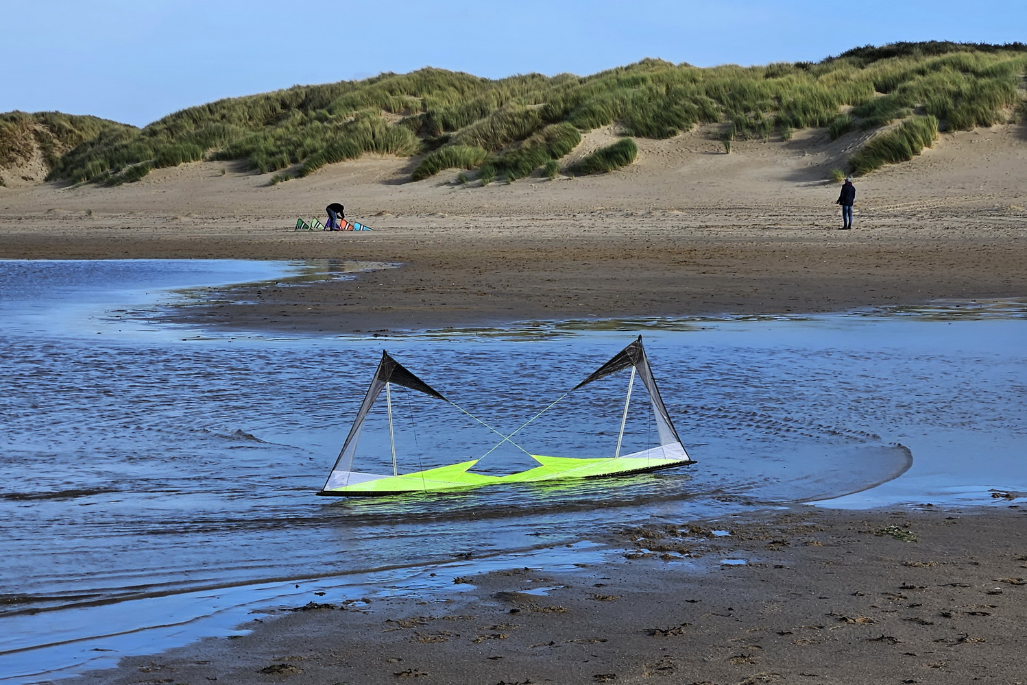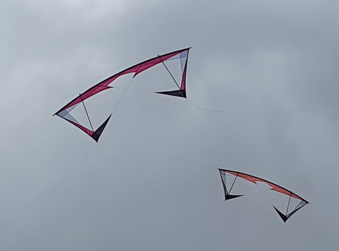 Den von Jörg Nasenbaer0815 gebauten an 20 m-Leinen und mein Original von Mathias an 120 Ft Leinen. An kurzen Leinen ist der Frame richtig flott und agil, an den längeren Leinen steht die Präzision im Vordergrund. Hat beides Freude gemacht! Hier drei Bilder von Jörgs Frame und unten noch eins von meinem.