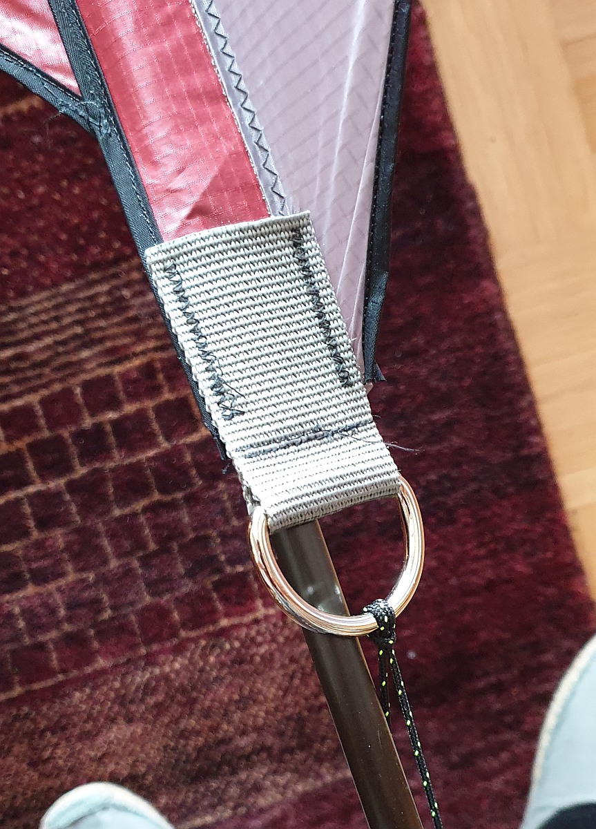 Dann lässt sich das gut in eine Splitkappe einfädeln und das Stabende kann nicht auf dem Saumbandstreifen zur Seite rutschen.