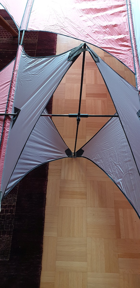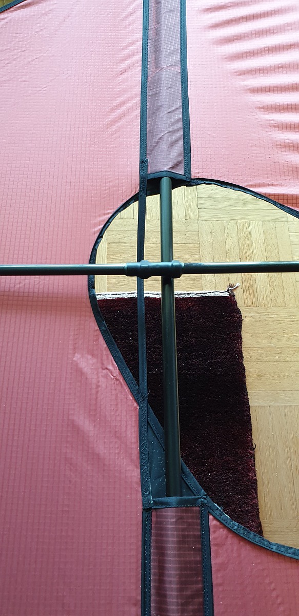 Die Bestabung ist aus 8mm CFK Rohr (die Aufstellstangen der 3 Zellen), 10mm CFK Rohr (die Spreizen), 12mm CFK Rohr (die Längsstangen). Letztere könnten vermutlich auch problemlos mit 10mm Rohr ersetzt werden.
