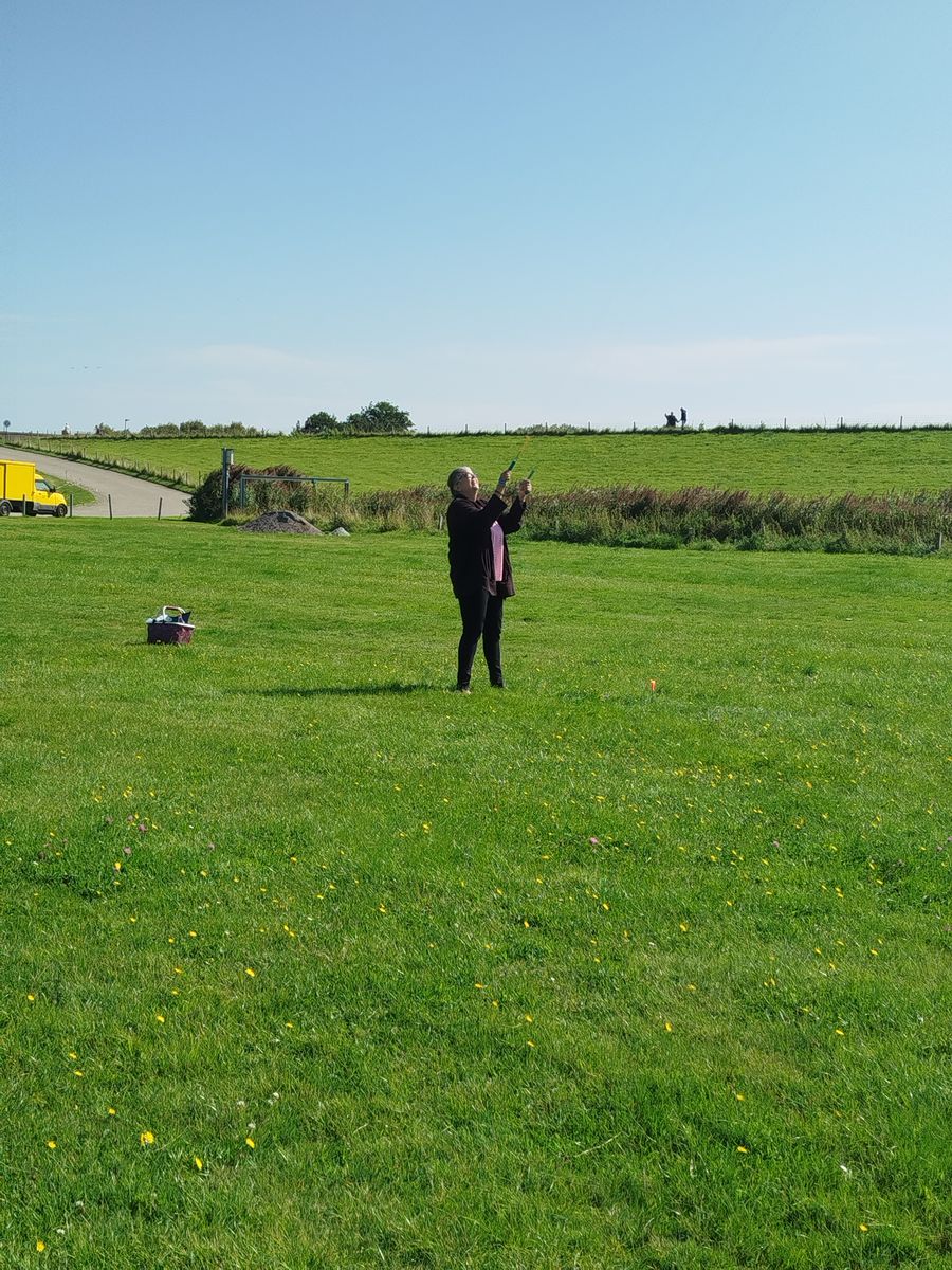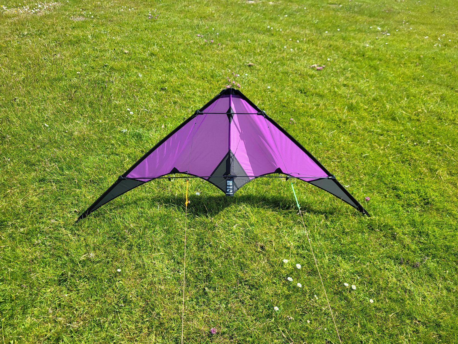 Ich war auf der Suche nach einem kleinen Einsteigerdrachen für meine bessere Hälfte da ich sie an unser Hobby ranführen wollte. Also die Vorgaben waren nicht zu zugstark , nicht zu schnell , nicht zu teuer und natürlich nicht zu gross ausserdem war es wichtig das die Wunschfarben erfüllt werden können. Also nachdem Michael mir vor langer Zeit mal ein Bild zukommen lassen hat es war ein gelber mit schwarzen Ecken habe ich damals gedacht naja sieht ja ganz nett aus aber denke ist nichts für mich. Aber dann habe ich mich doch dazu entschlossen einen in Wunschfarben zu orden und was soll ich sagen. Nun ist er angekommen meine Freundin hat sich sehr gefreut weil es genau ihre Lieblingsfarben waren. Also rauf auf die Wiese und dann den Erstflug gemacht dadurch das sie keine Flugerfahungen hat sagte sie mach du mal den Erstflug natürlich hab Ich mir das nicht 2 mal sagen lassen . Also dann bei 15 bis 18 kmh die 38 dan 30 m angetüddelt und den Ratz Fatz auf dem 3.Knoten angezogen. Spacekites Typisch Start total unkompliziert und sicher und einfach zu fliegen zu bewegen dann mal so die ersten Runden geflogen und dachte so okay der kleine macht seinem Namen ja alle Ehre meine Freundin dann der ist aber schon sehr flott unterwegs. Also ich hatte mich ja vorher mit Elchgeweih ausgetauscht da er schon einen Ratz Fatz hatte und wusste das er flott unterwegs ist also hab ich mir gedacht naja den Kite einbremsen ist ja kein Problem einfach mal einen Tail anbauen in 10 m das sollte gehen leider was es leichter gesagt als getan aber nach etwas suche habe ich das richtige gefunden natürlich farblich passend. Also gelandet und den Tail angebaut und wieder gestartet und geflogen dann sagte sie auf einmal so ist es aber schon deutlich langsamer und wagte sich selber an die Leine und flog mit Unterstützung auch ihre ersten Runden ihren neuen Kite und freute sich riesig darüber das ich ihr den Kite gekauft hab. Ich bin von dem kleinen auch sehr begeistert und flog ich sehr gerne .