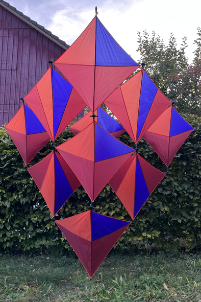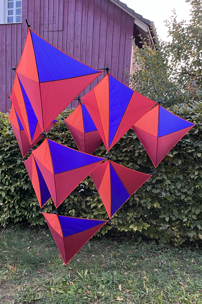 Die Befestigungsschlaufen an den Ecken möglichst kurz ausführen. Sonst wird es schwierig, gute Spannung in die Segel zu bekommen. Ich habe da leider nicht so drauf geachtet und auch noch Gummiringe aus einem Fahrradschlauch für die Befestigung verwendet. Das sieht dann im Flug so aus.