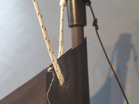 5. Scheuerschutz für die Vertikalen. Mylar ist recht scharfkantig wenn es geschnitten ist. Als Segelmaterial nehme ich Icarex P31, besteht da nicht gefahr, dass das Mylar das Segel mehr beschädigt, als der Stab beim fliegen?