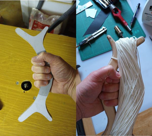 Den Nächsten habe ich etwas vergrößert auf 28cm Länge und 12cm Breite, dann ging die Probeschnur gut drauf und er liegt gut in der Hand.