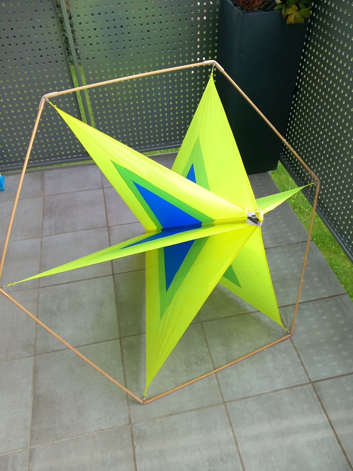 habe gerade beim Aufräumen diesen Sterndrachen gefunden. Meiner Erinnerung nach ist der bei mir nie geflogen, habe wohl keine passende Waageneinstellung gefunden.