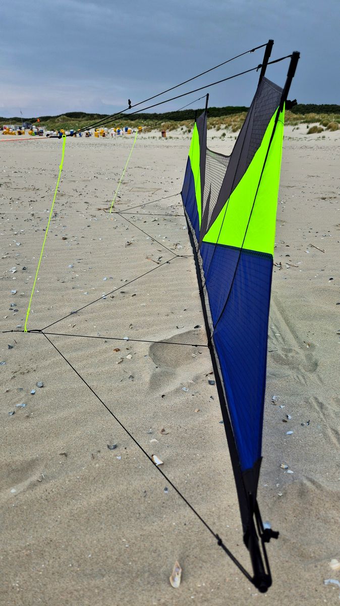 Ich bin heute bei Leichtwind meinen neuen Blast mit einer Waage mit 2 Anknüpfpunkten und Verbindungsschenkel geflogen.