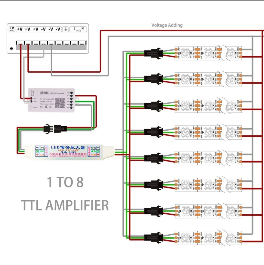 - die LEDs lassen sich frei und relativ unabhängig von der Reihenfolge der Verkabelung in Segmente und Gruppen konfigurieren.