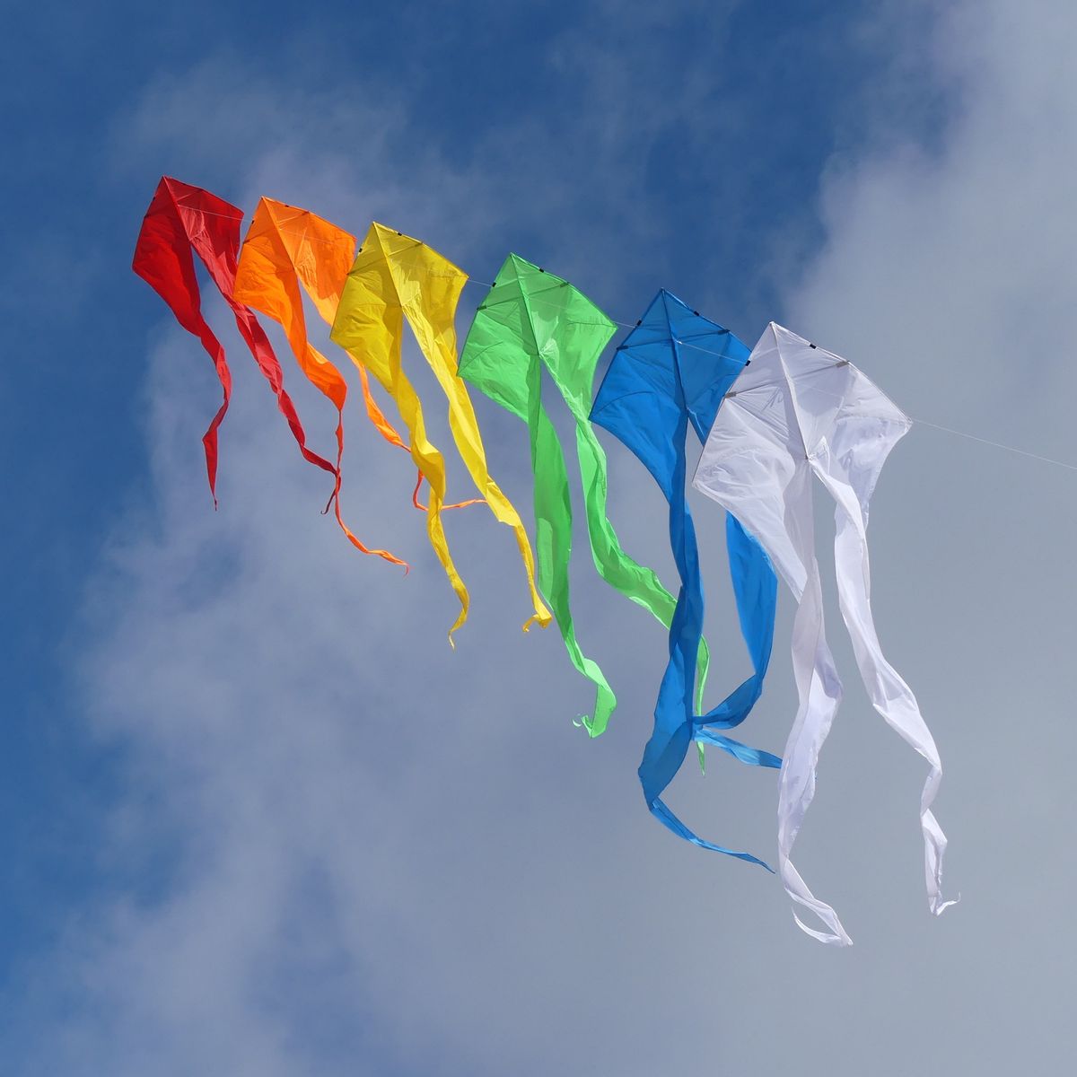 Der Ghost Kite hatte uns auf Grund des Preises und der Farbvielfalt angelacht, so dass wir uns alle sechs zugelegt hatten... Es war von vornherein Absicht die als Train miteinander zu verbinden. Also ist meine bessere Hälfte ans Werk gegangen...