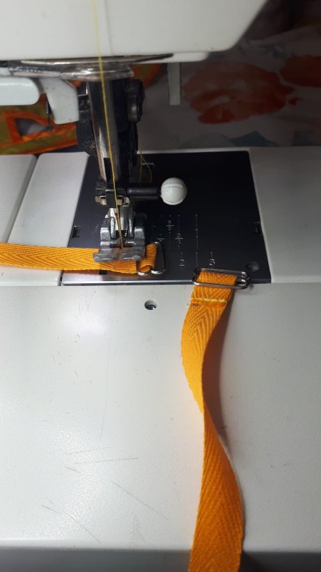 Habe zuerst die B-Ringe auf das Band genäht.