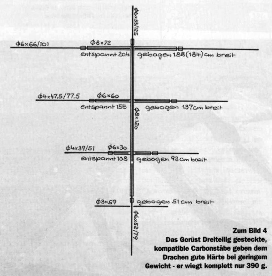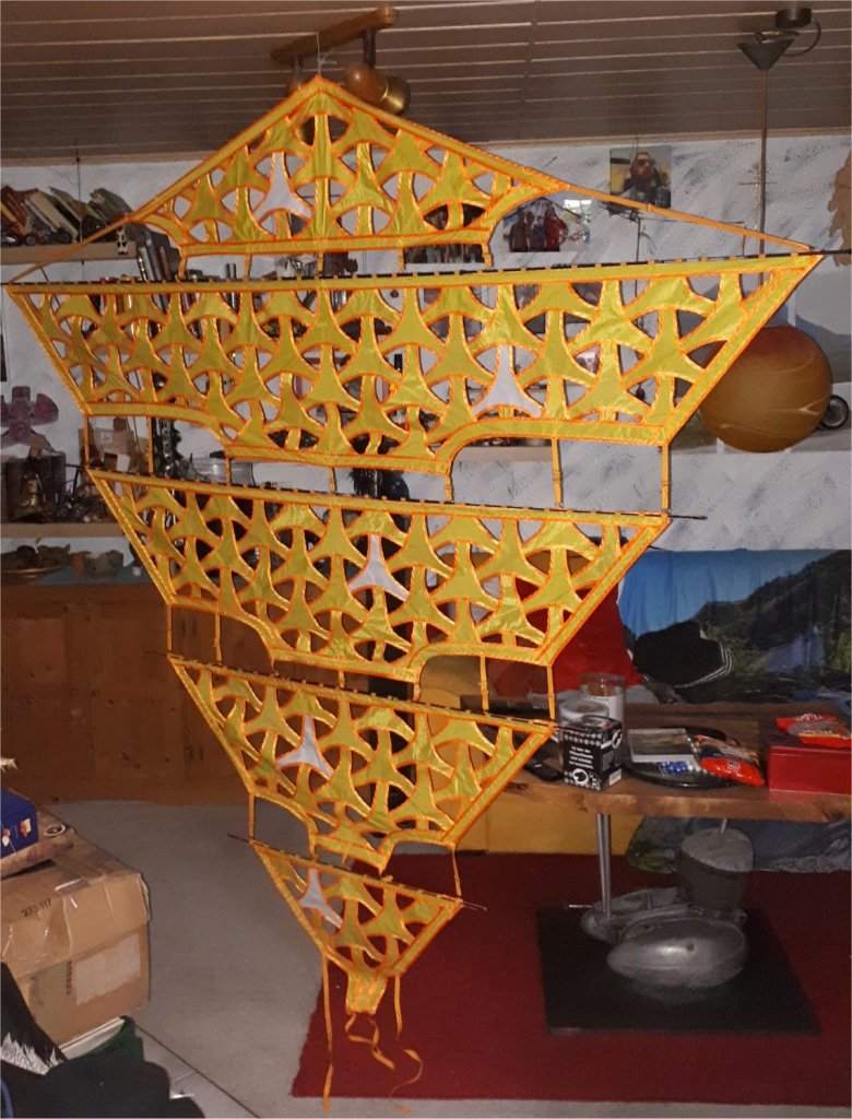 Ich hoffe das klappt mit diesen Schiebern. In anderen Drachen habe ich das auch mal so probiert, bin aber daran gescheitert, da die Schieber nur unter Zug ihre Position hielten und nach dem Abbau des Drachen sich lockerten und ganz leicht verschoben.