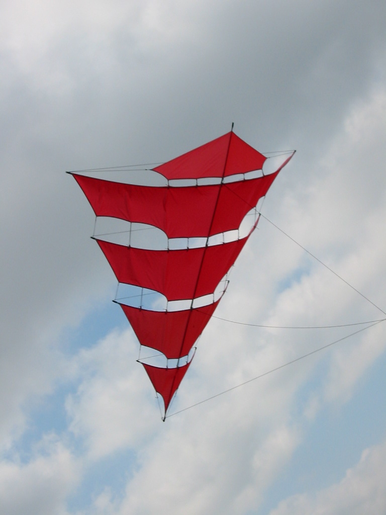 Es hat mich richtig gefreut, dass er so willig beim ersten Start nach oben gezogen hat. Aber für einen Drachen der Größe - so knapp über 2m x 2m - hat er richtig Zug entwickelt und flog einen realtiv steilen Leinenwinkel.