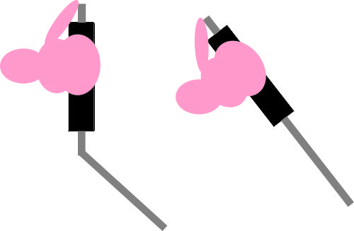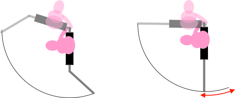 Um bei geraden Griffen den selben Weg nutzen zu können, muß der Griff schräg nach vorne gehalten werden. Würde man den gereden Griff gerade halten, hätte man weniger Auslenkung nach hinten zur Verfügung.
