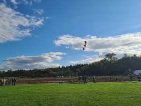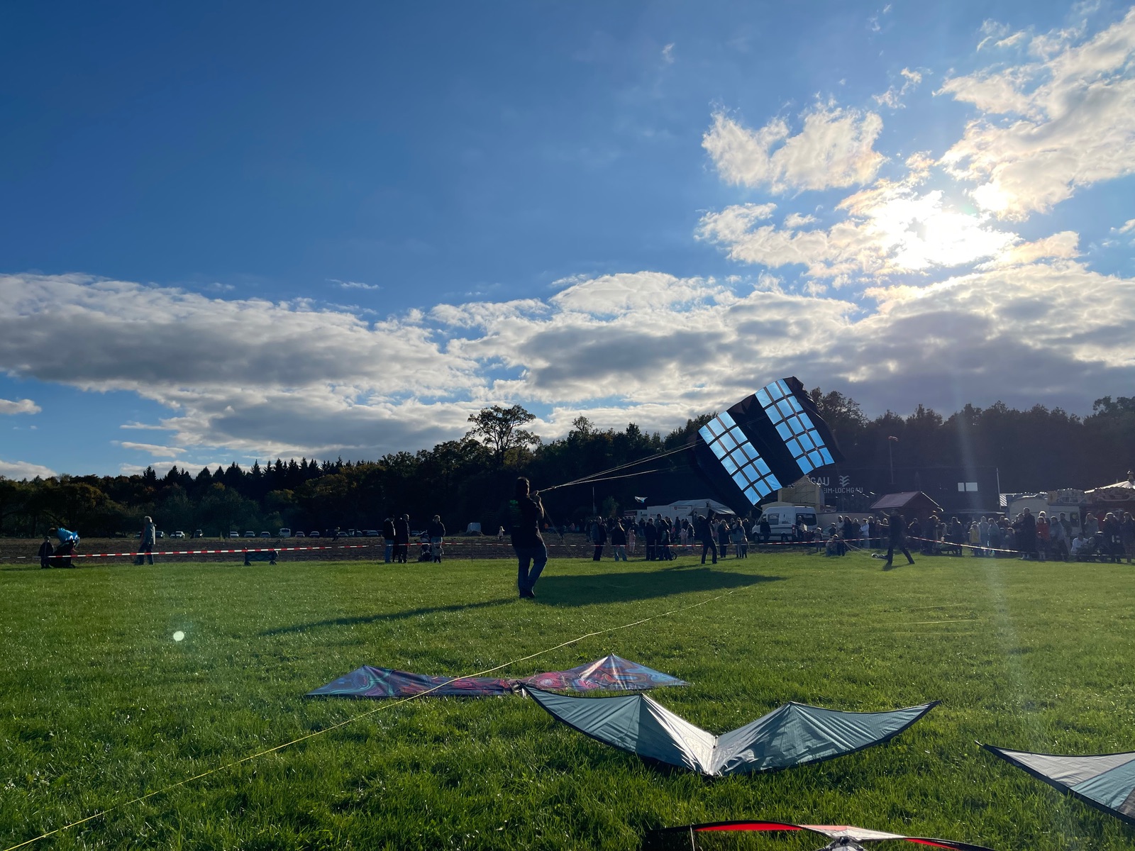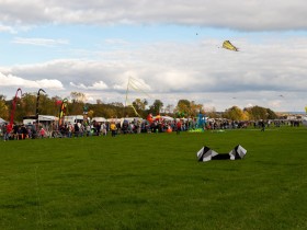 Gestern war an 4-Leinen für 2 Piloten mehr SUL-Fliegen: Cengel-, Polo-, Rev1 als KQK-SUL gingen mit „aktivem“ Fliegen, später Fulcrum-SUL. Einige Großdrachen mit 25 m2-Lifter, um Tiere in die Luft zu bringen. Schönes Fest mit Einleinern (gestern bis auf 300 m) und für Familien mit Kindern. Leider wenig Platz für 2 und 4Leiner, 36m-Teamleinen passen kaum auf die abgesperrten Felder - Danke ans 1 Leiner-Feld für euren abgesperrten Platz. Der Wind war für „kurze“ Leinen gestern am östlichen äußeren Ende, bei den Familien, wieder besser als am Fest Gelände.