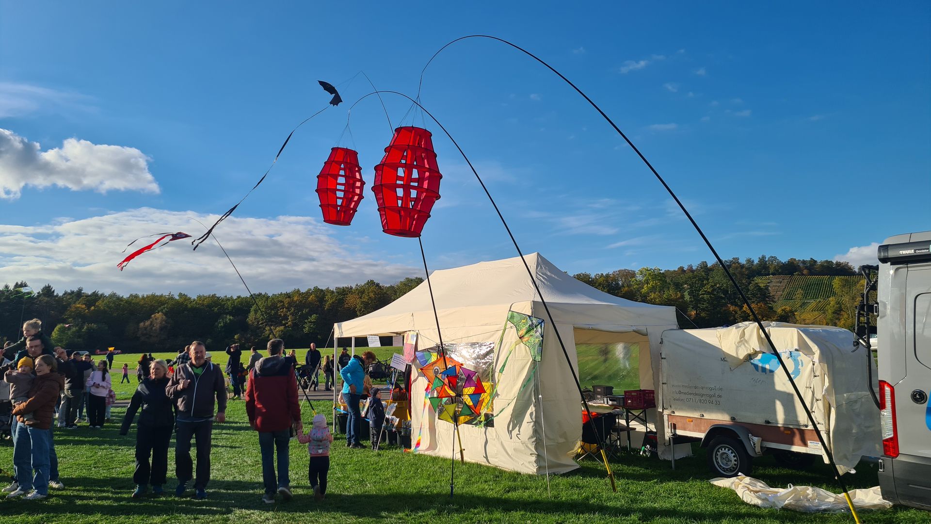 Hallo zusammen, komme jetzt auch endlich zum schreiben. Es war war ein tolles Familiendrachenfest, es kamen unendlich Familien und haben mich am Sonntag bis 14 Uhr leergekauft. Laut Aussage war der Samstag von den Besucherzahlen 50 % über dem des Vorjahres