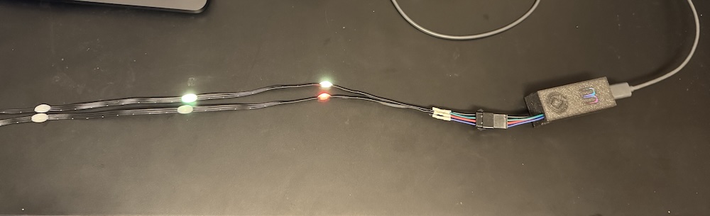 2. die internen LEDs benutze ich nicht. Die sind ja am Ende innerhalb des Gehäuses und nicht sichtbar. Vom Controller aus werden die ersten 4 LEDs von String1 und die erste led von string2 benutzt. Sobald man die rechte Taste 2 secunden gedrückt hält zeigen die 4 LEDs den Akkustand an und die 1. led auf dem zweiten String blinkt um zu zeigen das der Controller aktiv ist.
