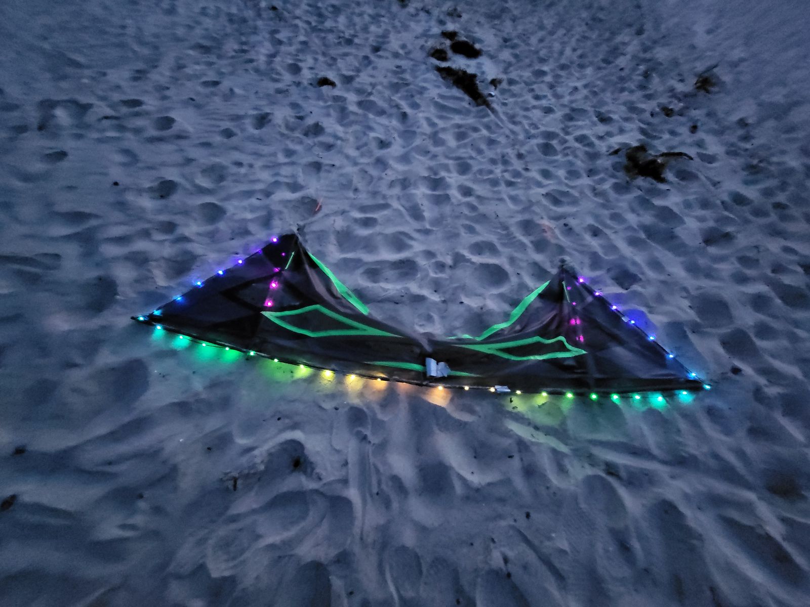 Als mein Sohn oder meine Frau ihn mit etwas mehr Geschwindigkeit auf den Strand gesetzt haben, war zumindest der Controller ab...vielleicht probier ich zu Hause dann mal die Lösung mit dem Klettverschluss aus. Auf den Fotos kommen die LEDs leider nicht ganz so gut rüber, aber vor Ort sah es einfach richtig gut aus