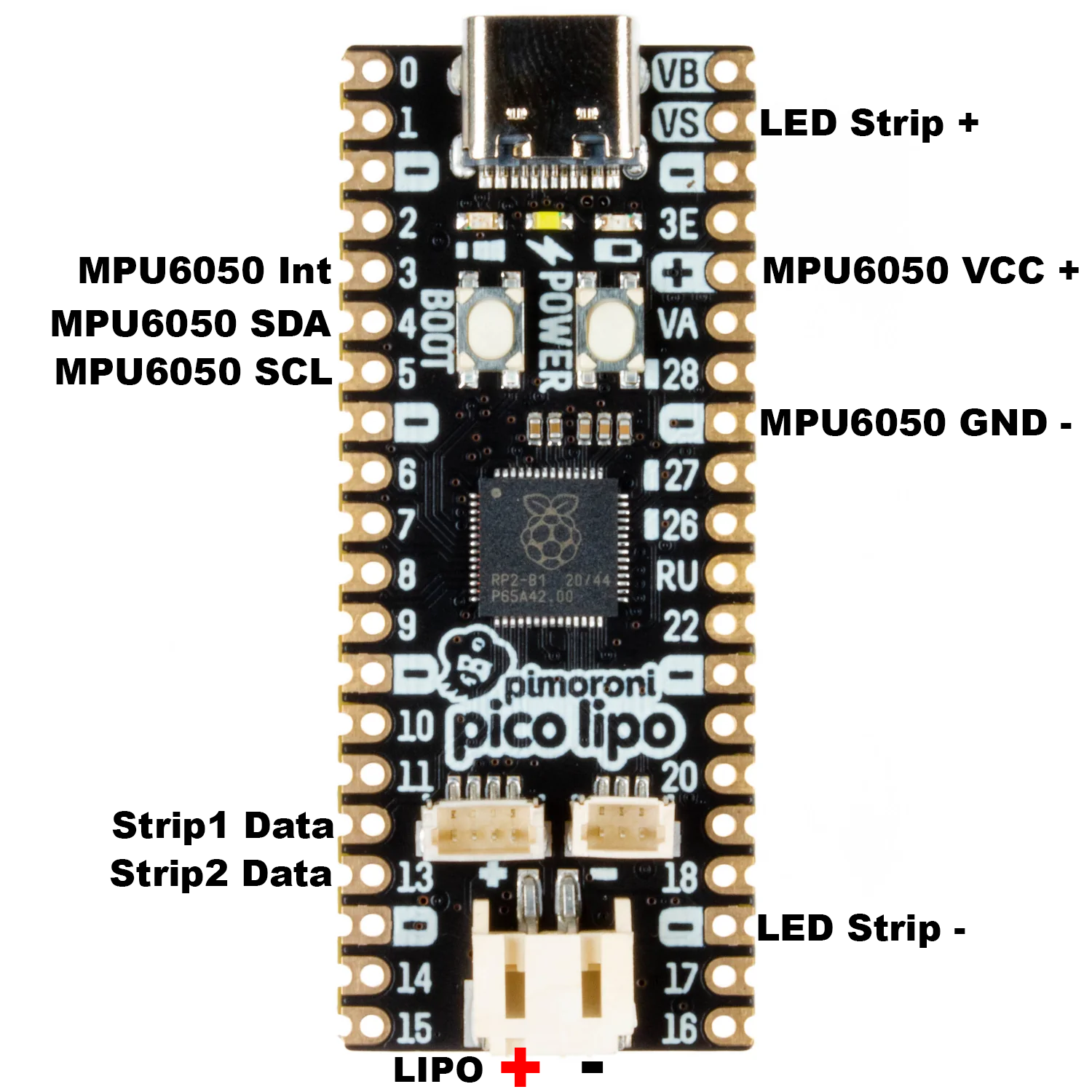 zu 1. Achte auf die Richtige Polung des Lipo. Auf dem Pimoroni Pico Lipo sind hinter der Buchste für den Akku kleine Symbole die angeben wo plus und minus sein muss.
