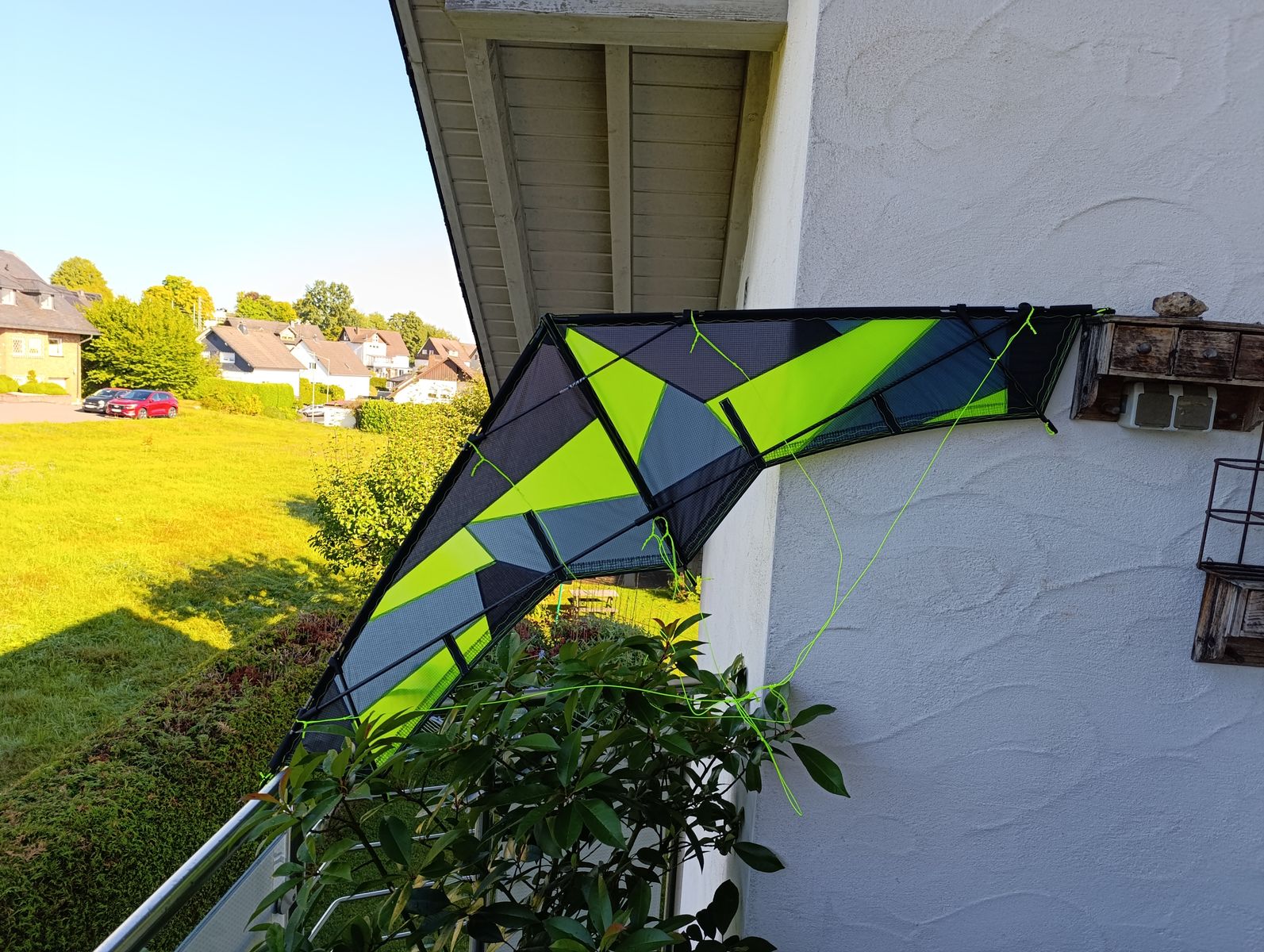 Mit nachträglich aufgesetzten Segeltaschen versehen mit Flachcarbon hat der Viking dann auch den Test bei Starkwind bestanden. Ob diese jetzt tatsächlich notwendig sind, müsste ich bei dem nächsten Kite einfach mal testen.