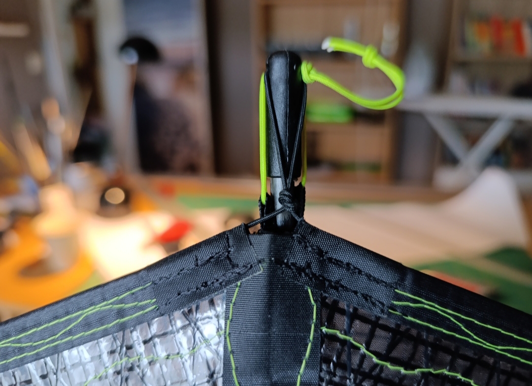 Hier die Lösung der Saumschnur, um auch das Segel an der Kielspitze richtig auszuformen: