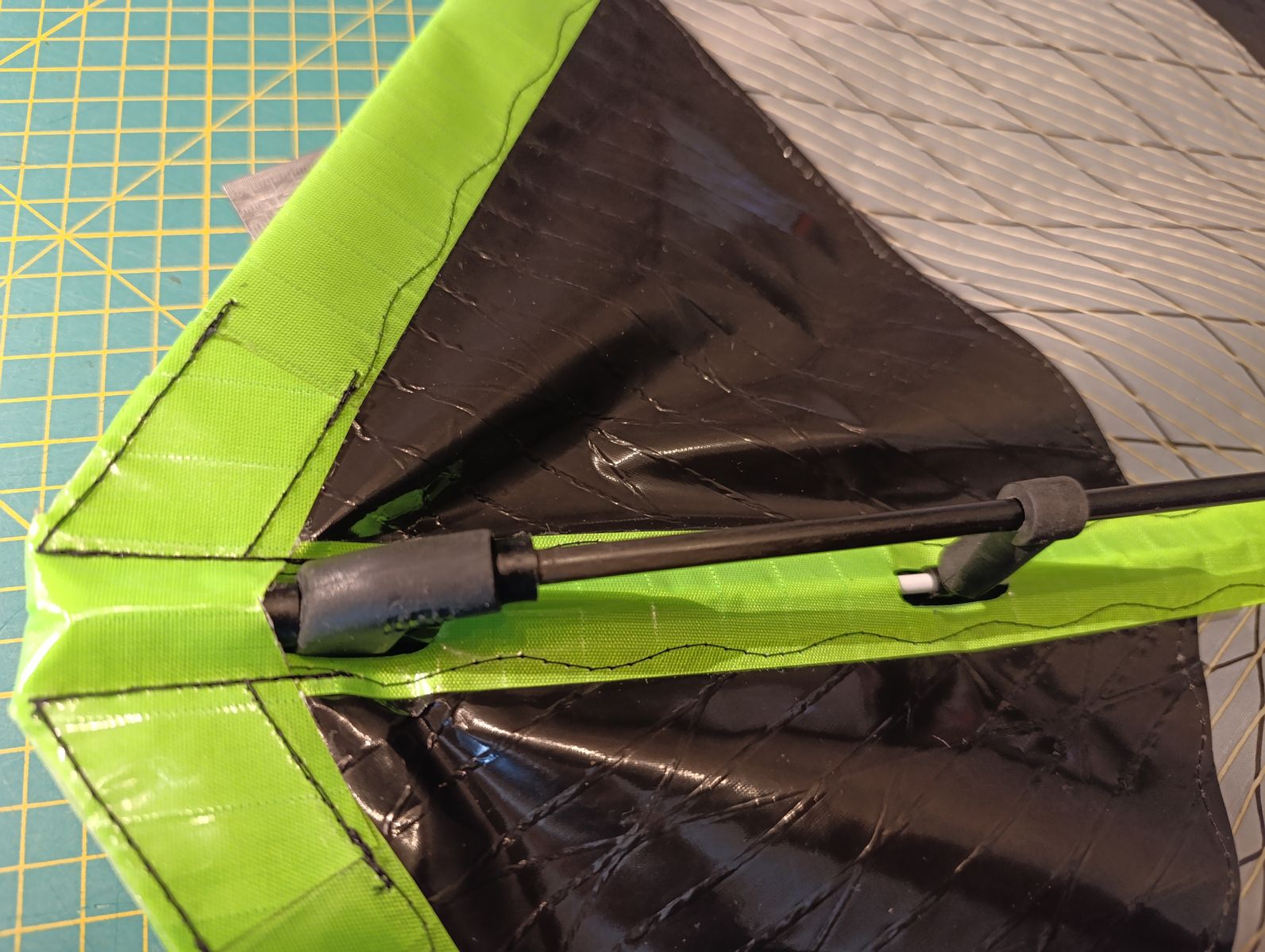 Hatte die Saumschnur durchgehend, was aber bei dieser Kielkonstruktion gar nicht gut ist. Also wird diese am Kiel nun vernäht.