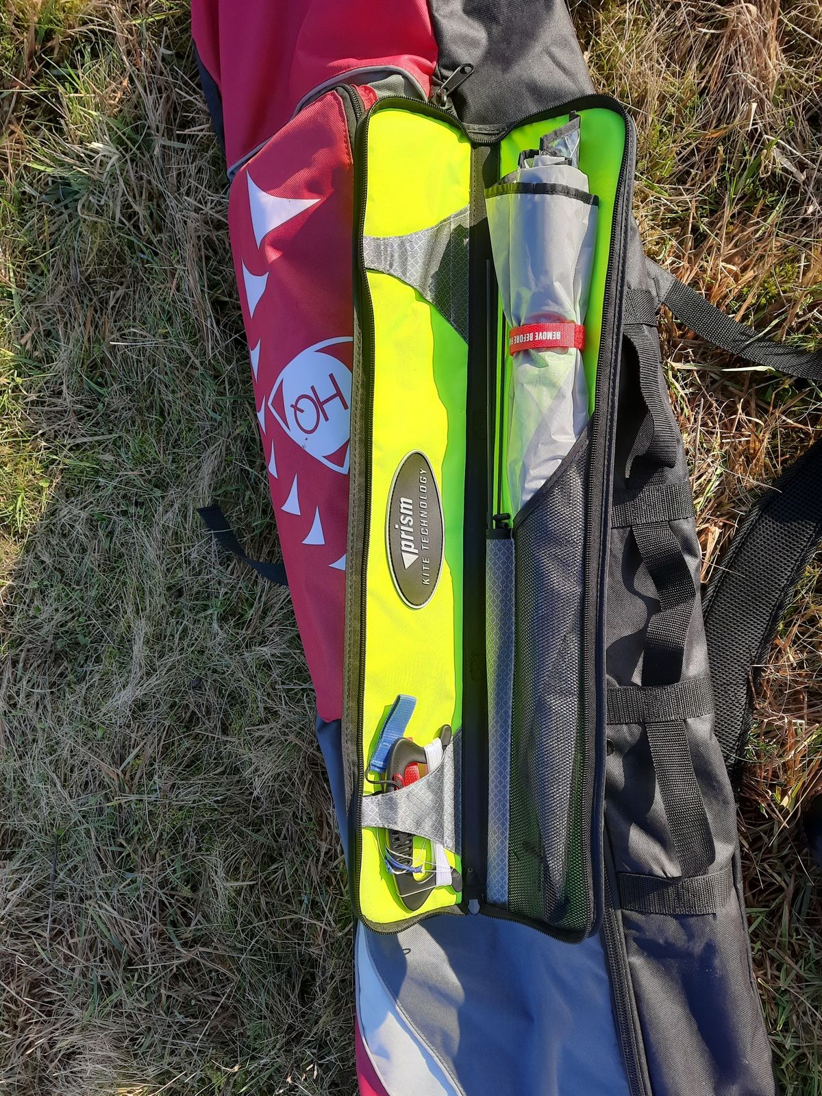 Das Prism Kites übliche "Flight manual" darf natürlich nicht fehlen- welches Schritt für Schritt den Aufbau des Drachens beschreibt und auch ein paar Tips zum Fliegen bei wenig Wind bietet. Das Prism-übliche rote Klettband mit dem Aufdruck "remove before flight" zum Einpacken des Drachens fehlt natürlich auch nicht- ein süsses, kleines Detail.