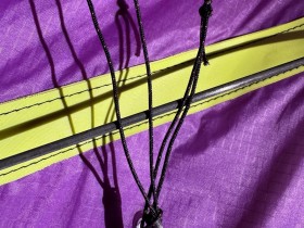 Und ein paar Fotos der Spreizenstäbe. Diese sind so lang das sie hinten herausstehen und mit einer Kappe mit Gummi gehalten werden.