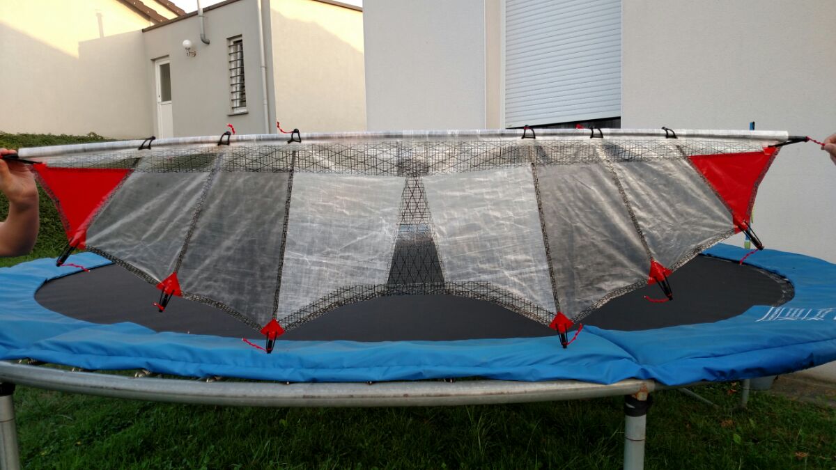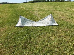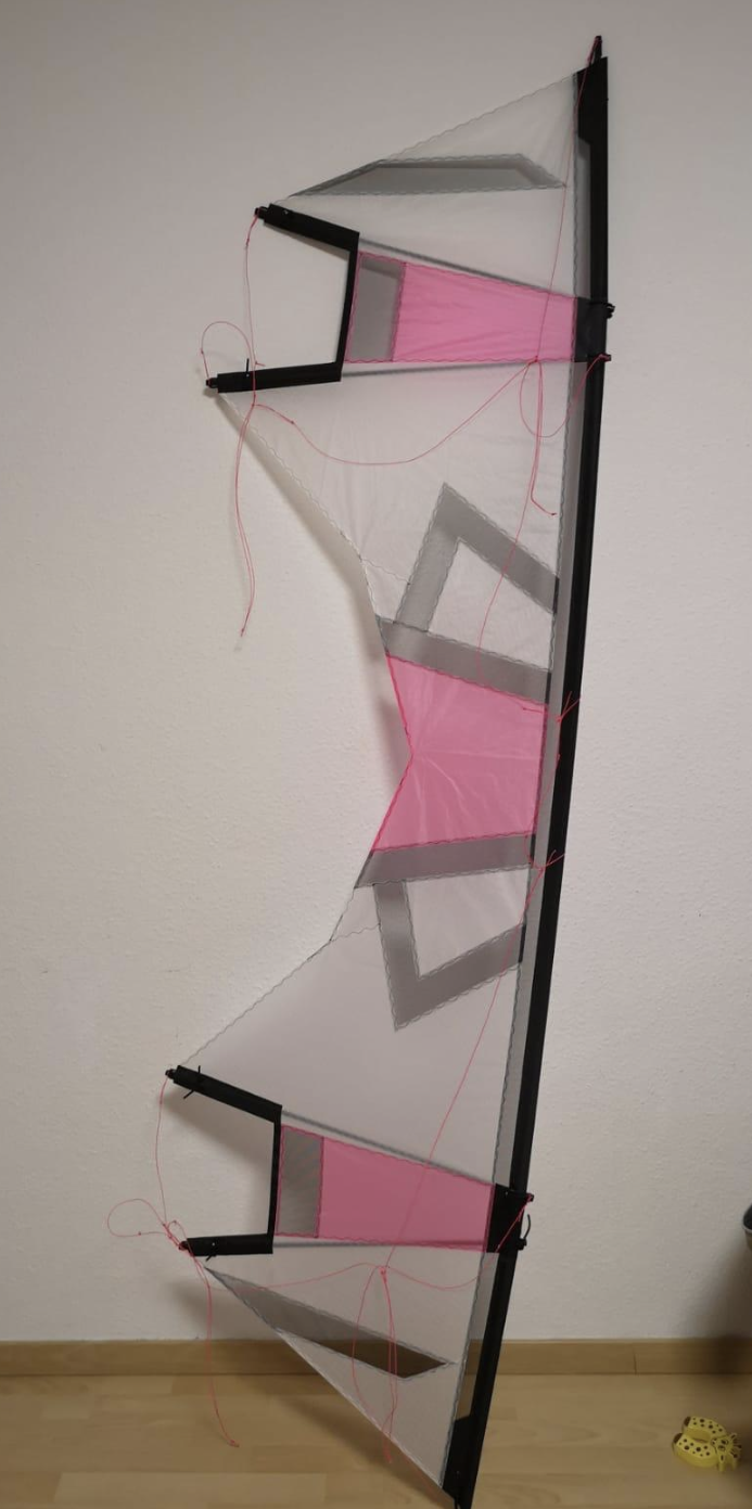 Sehr verwunderlich bei den vielen Stäben und dem schweren Material. 150 (cm?) ist wohl die Spannweite... das machts auch nicht besser bzgl. Leichtwind. Interessant wie du das hingekriegt hast.