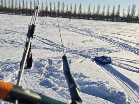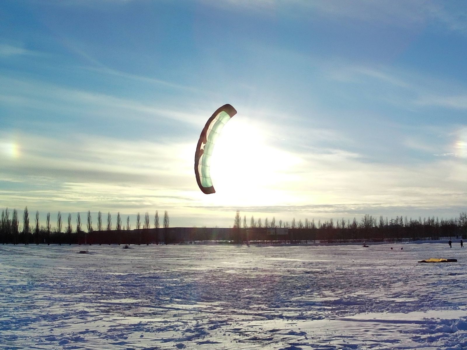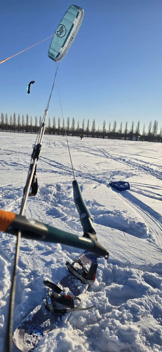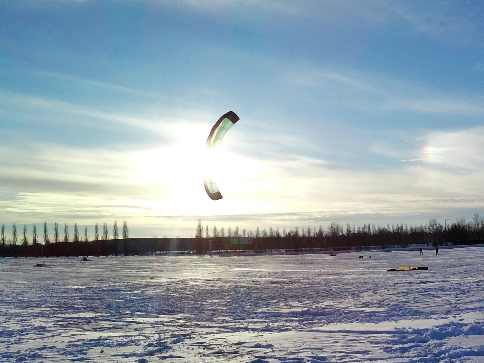 Heute Snowkiten bei Kaiserwetter und Hauchwind auf Homespot Messewiese Leipzig.
