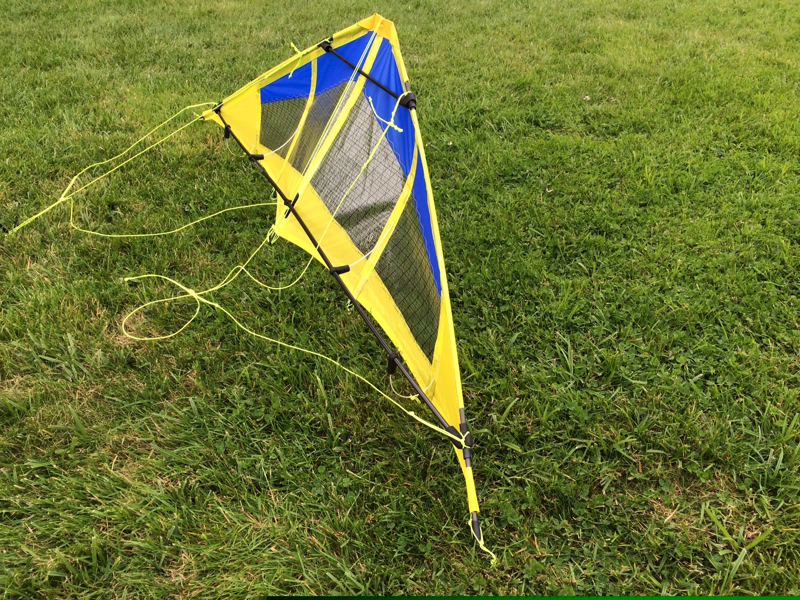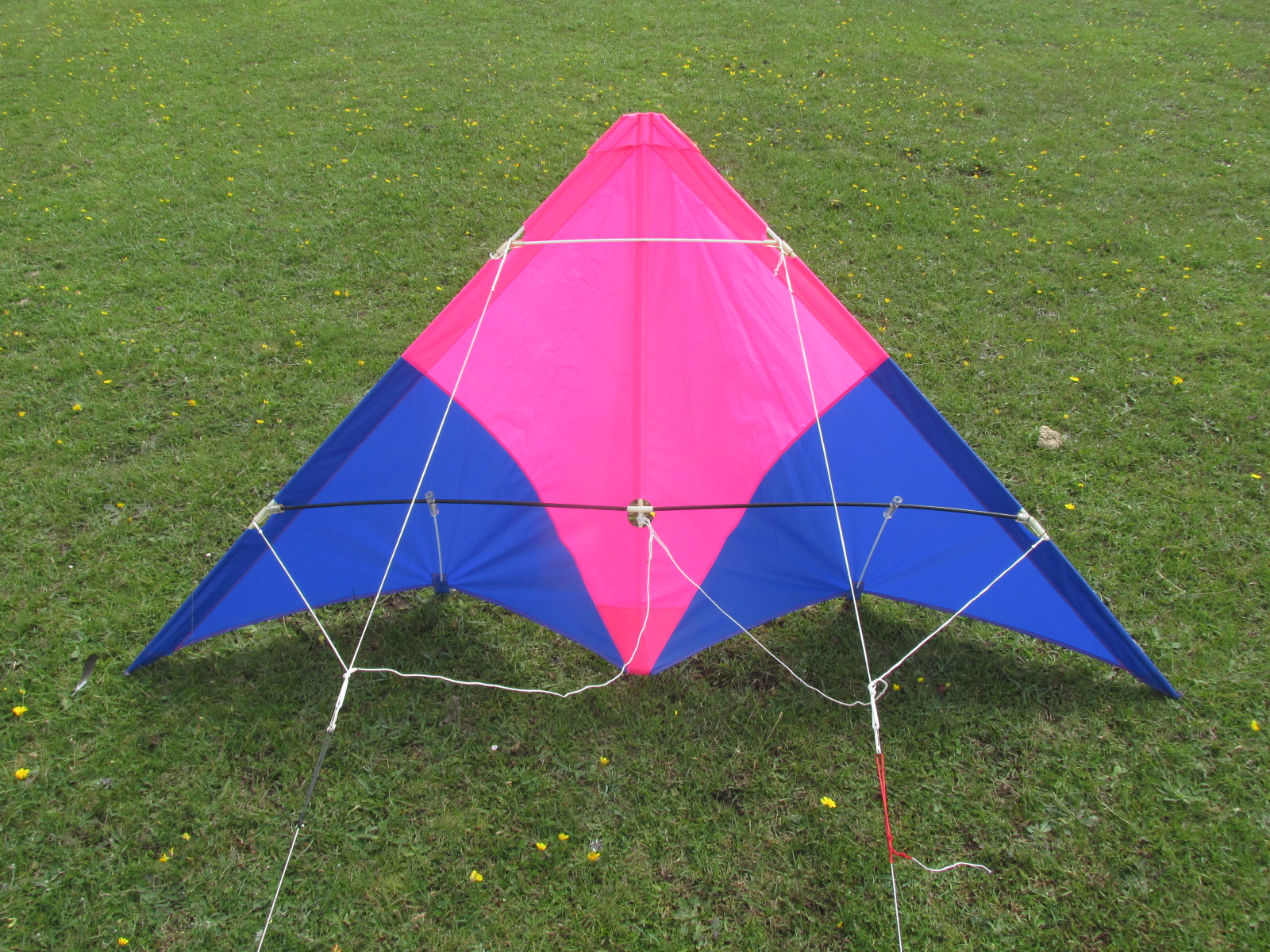 As far as I'm aware, this was the first dual-line delta produced by the American arm of Peter Powell Kites. To me, it really does look like a (small) diamond Stunter, to which a pair of wings is added.