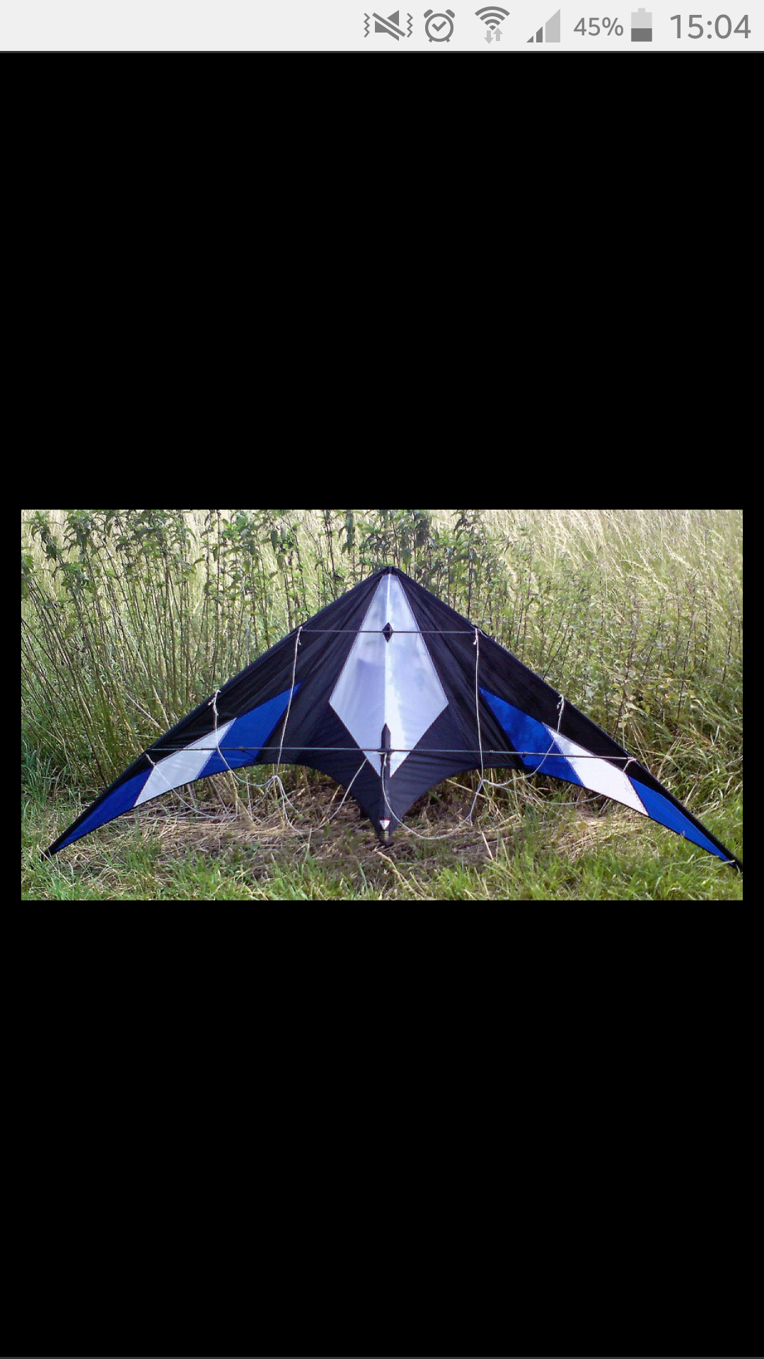 Dann wurde es gemischt gut/ doof. Mein neuer Drachen war aufgebaut! Ordentlicher Wind, zischte wunderbar in den Zenith! Einige Loops, ein wenig hin und her, plötzlich kein Druck mehr an der Leine, Drachen fällt runter, rechte untere Querspreize gelöst, standoff zermatscht! Erstmal: diese 20 Sekunden waren mega geil, aber so konnte ich nicht weiter fliegen. Den Zodiac 2.5 habe ich angesichts des hackigen Windes im Auto gelassen. Also alles wacker wieder eingepackt, zurück zum Laden ( bestimmt habt ihr ne Ahnung ), Problem erklärt, Ursache gefunden und beseitigt und dann einerseits happy, andererseits etwas stinkig nach Haus gefahren. Hab ja keine Lust jeden Tag 100 km abzuspulen! Aber, hier isser nun, ihr erkennt selbst, welcher Flieger mir zugeflogen ist!