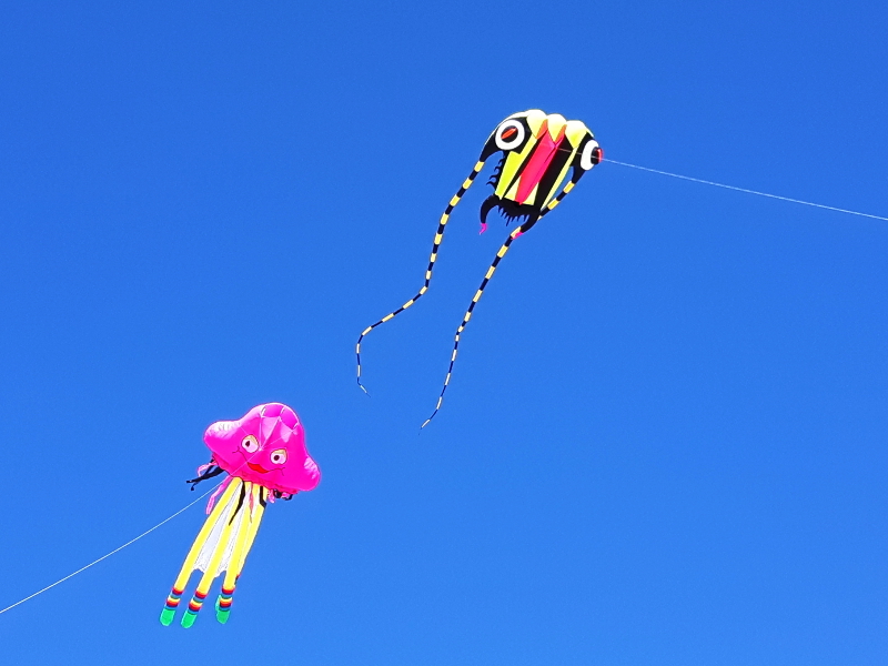 So, kommen wir zurück zu den schönen Themen: Wer hat noch einen neuen Drachen in der Tasche? Bei mir ist es letztens ein Small Jellyfish von Metropolis geworden. Hier in trauter Eintracht mit dem Trilobite am Himmel von Hvide Sande: