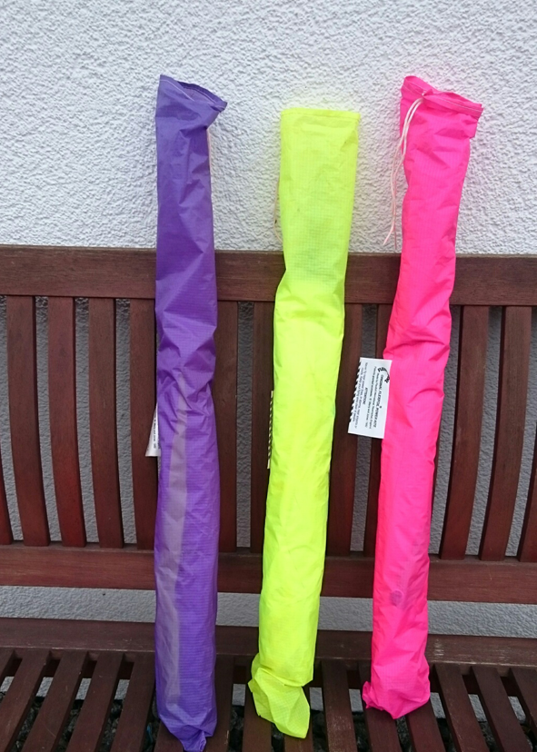 2x Hot Stripe lila und gelb, neuwertig, nur 3x als Gespann geflogen. Je 125,00 €.